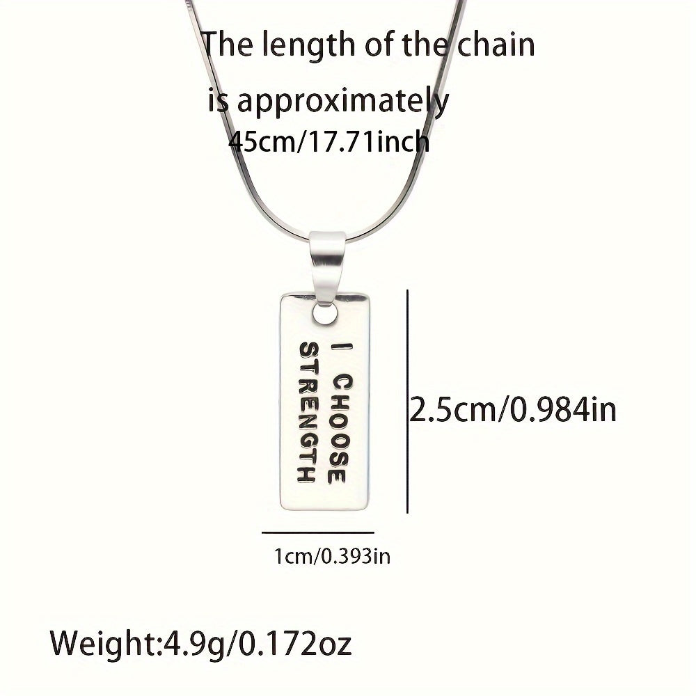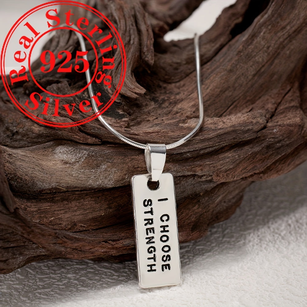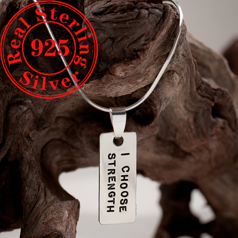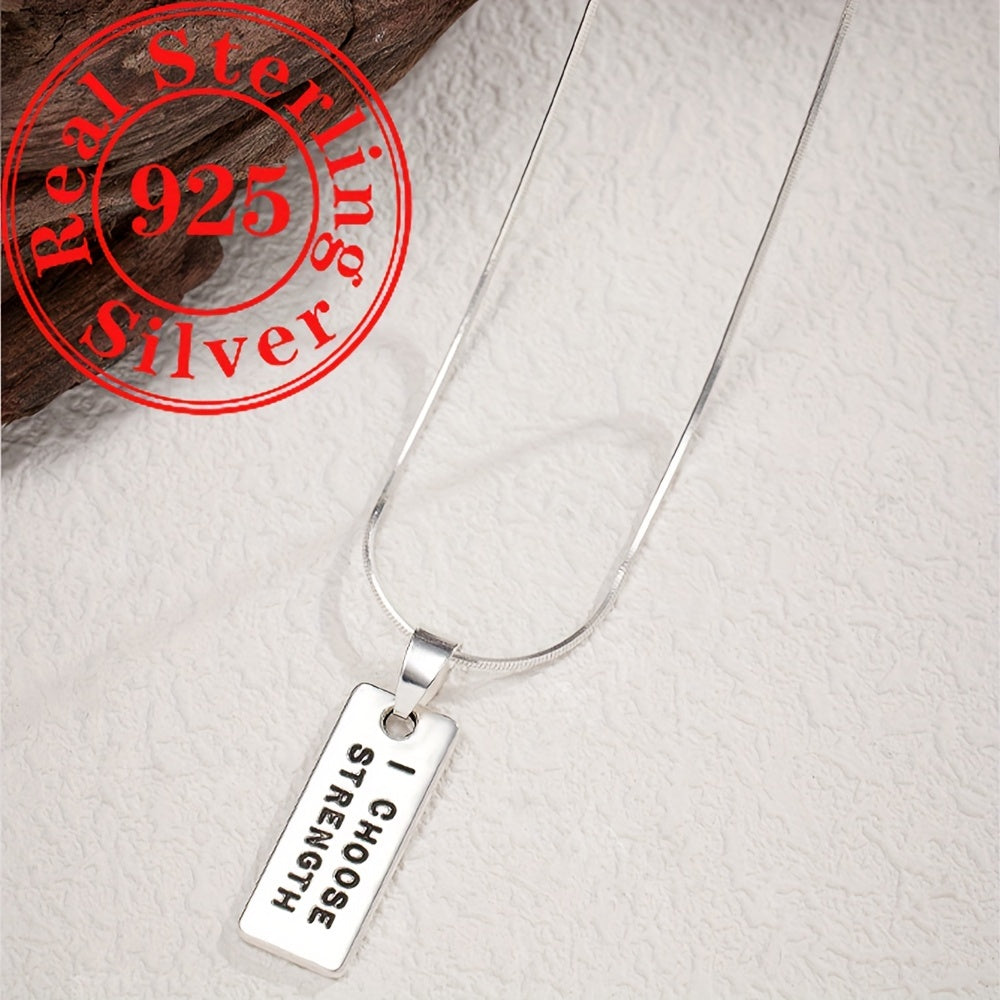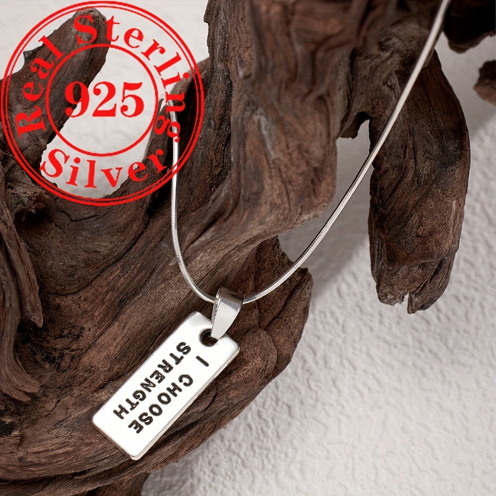 Elegant and meaningful S925 silver pendant with 'I Choose Strength' phrase on snake bone chain. Suitable for men and women. Approx weight: 4.9g.