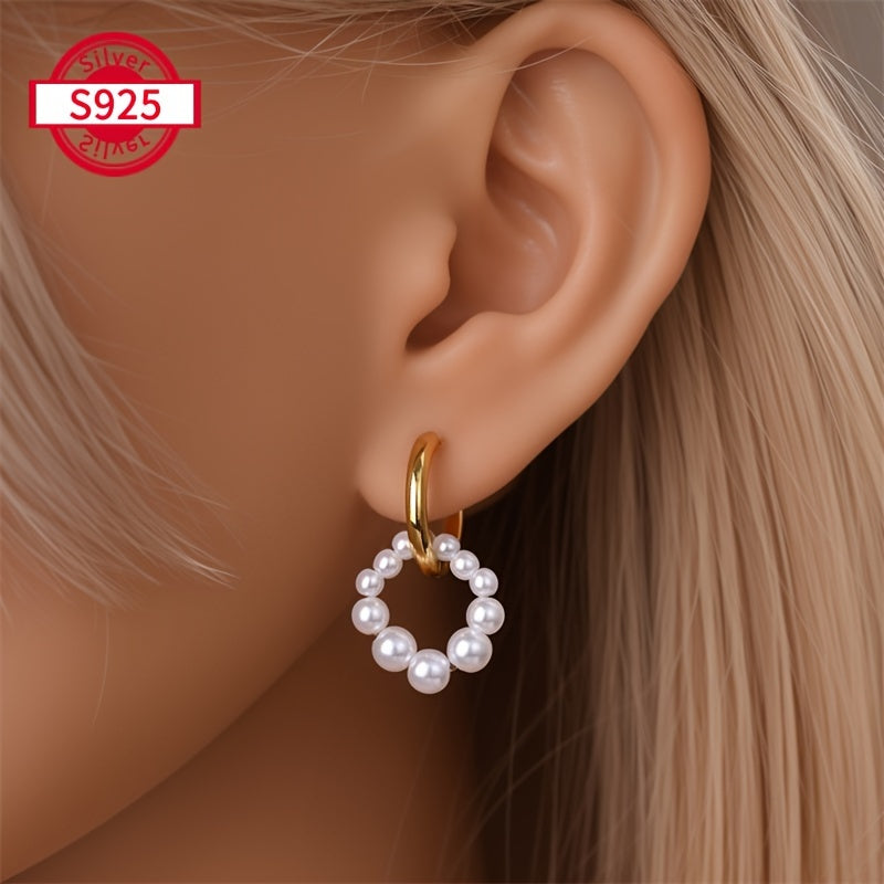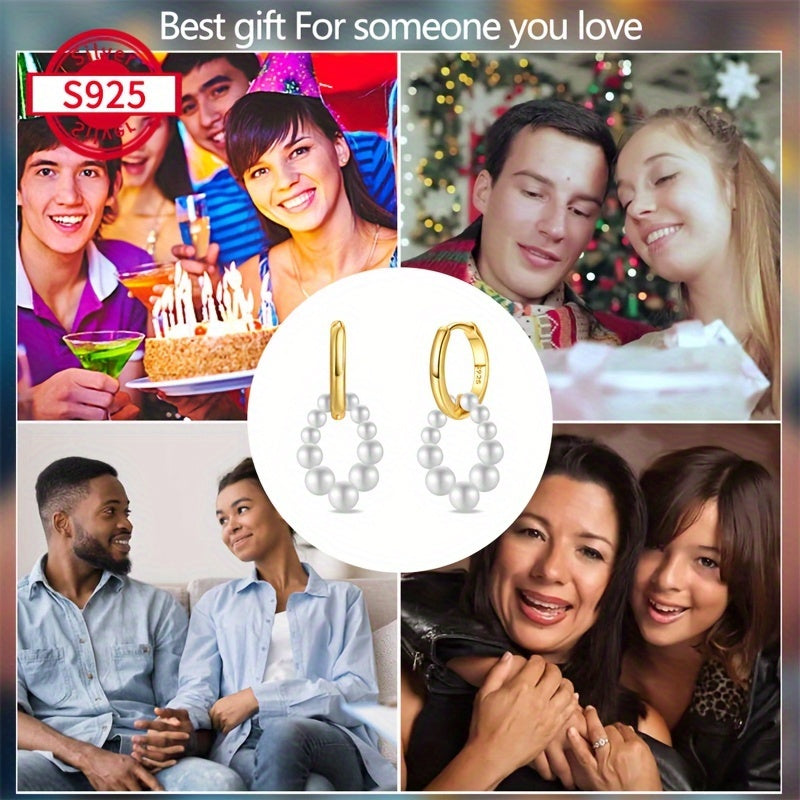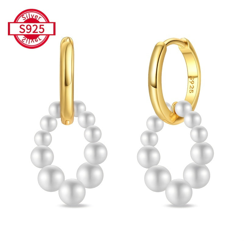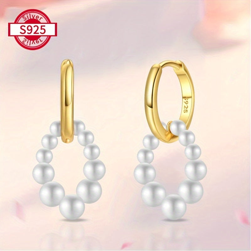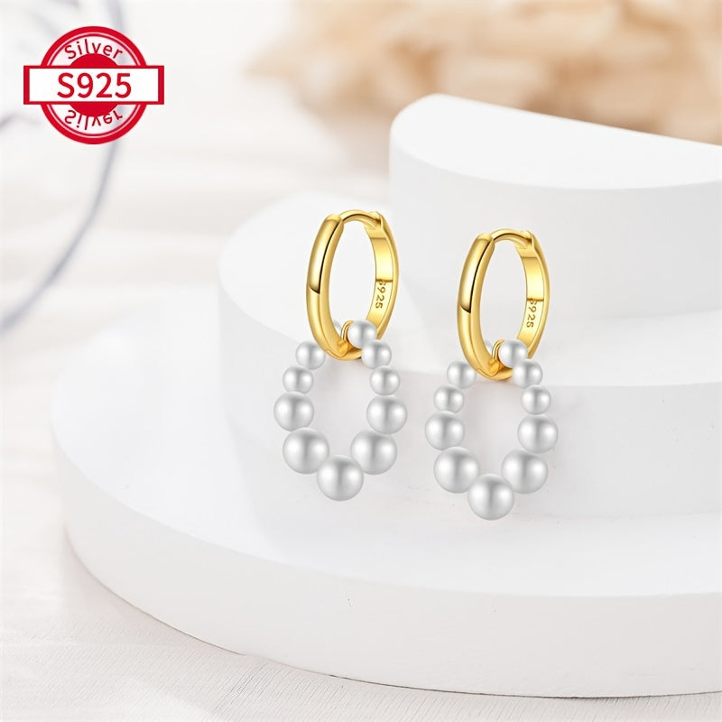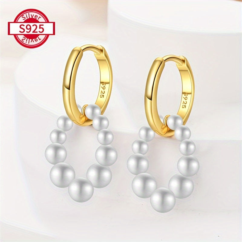 This pair of S925 pure silvery golden synthetic pearl earrings is perfect for daily wear, parties, and outfit ensembles. Ideal for birthdays and holidays.