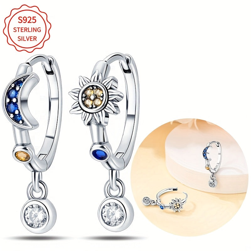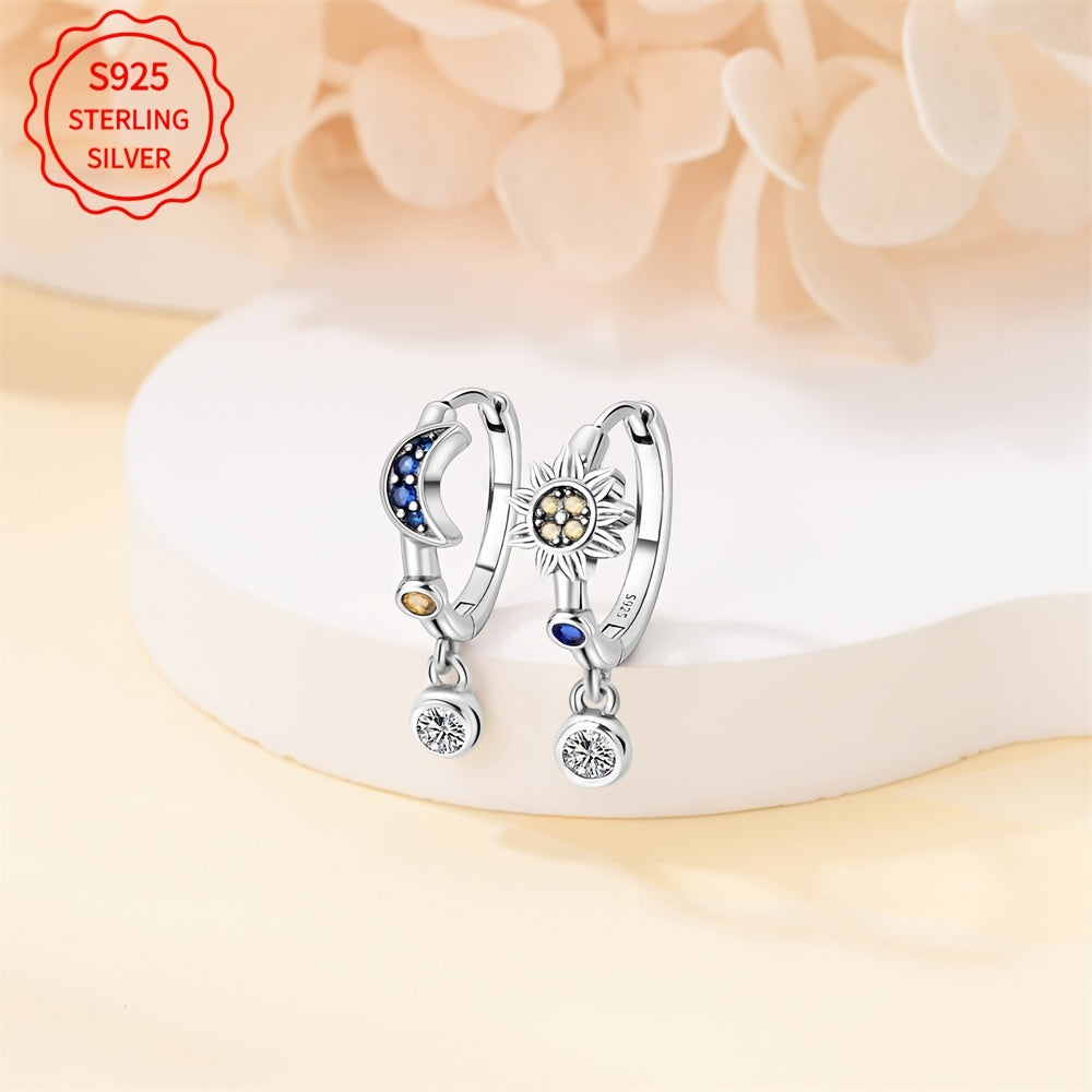 These elegant S925 pure silvery star moon earrings weighing 3g are perfect for parties and travel. They make a great DIY birthday or holiday gift for women's jewelry.