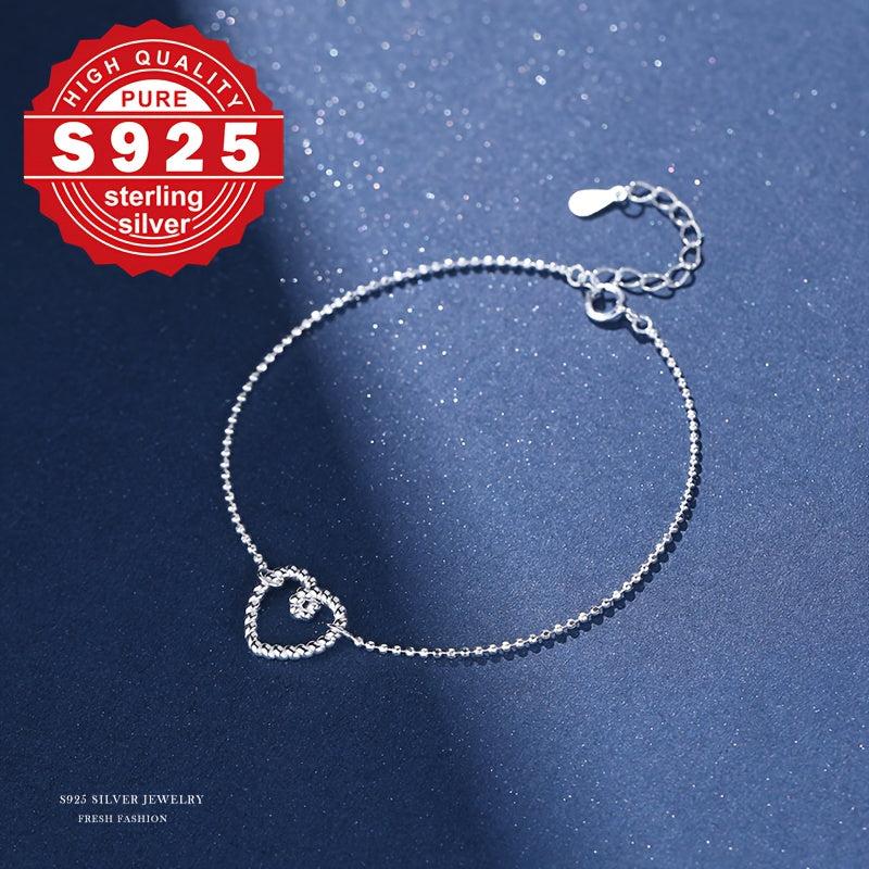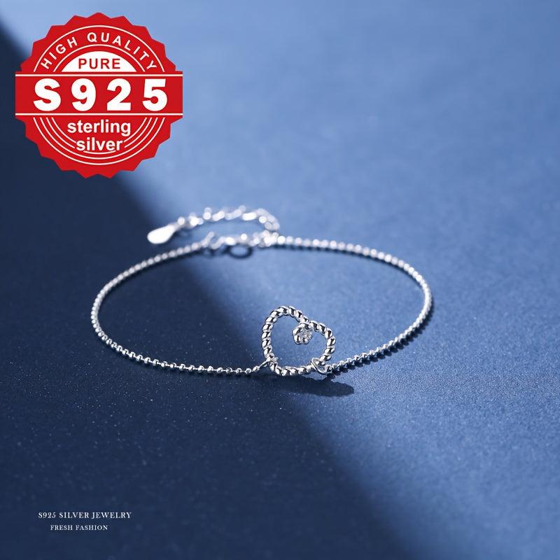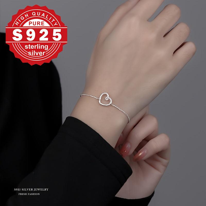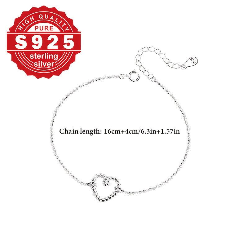 This women's bracelet is made of S925 sterling silver with a classic heart design. The silver plating adds style and versatility to your look.