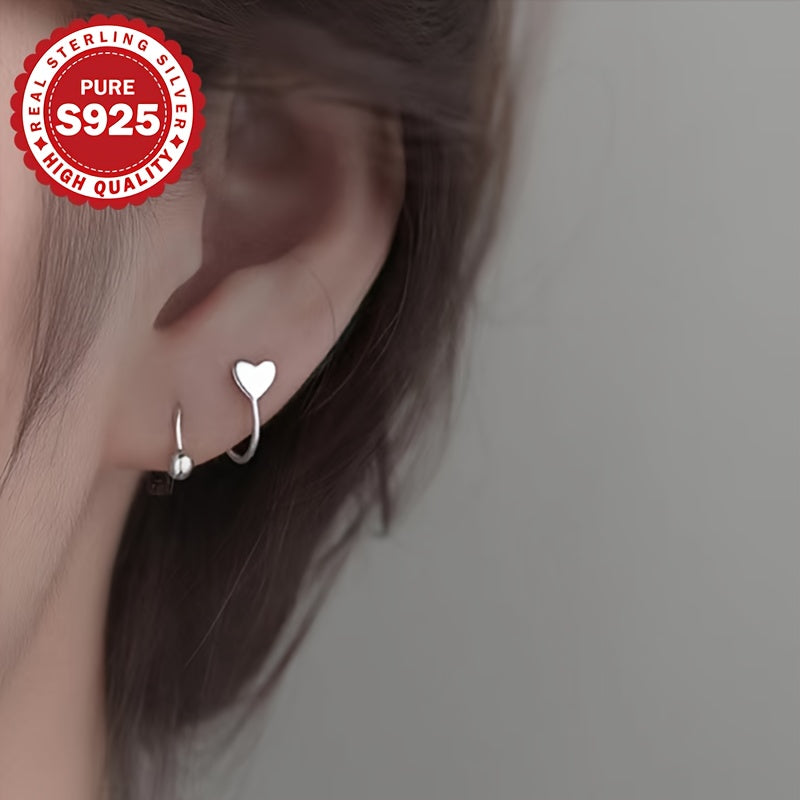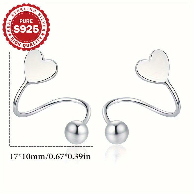 S925 Sterling Silver Heart Earrings for Women Hypoallergenic Lightweight 1 8g