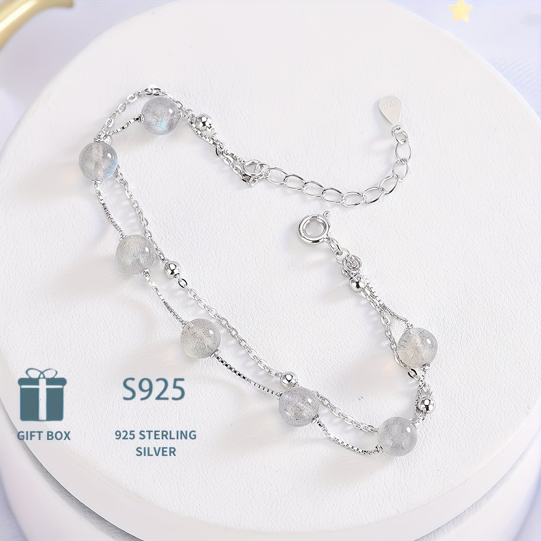 This stylish bracelet features a double layer design with stunning beads. Made of high-quality S925 sterling silver, it weighs 3.78g. Perfect for everyday wear or special occasions.