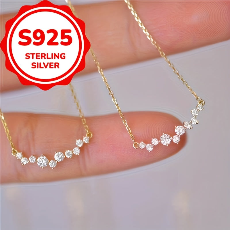 Elegant and stylish 925 silver pendant necklace featuring a four-prong round design. Perfect gift for women to adorn their clavicle chain.