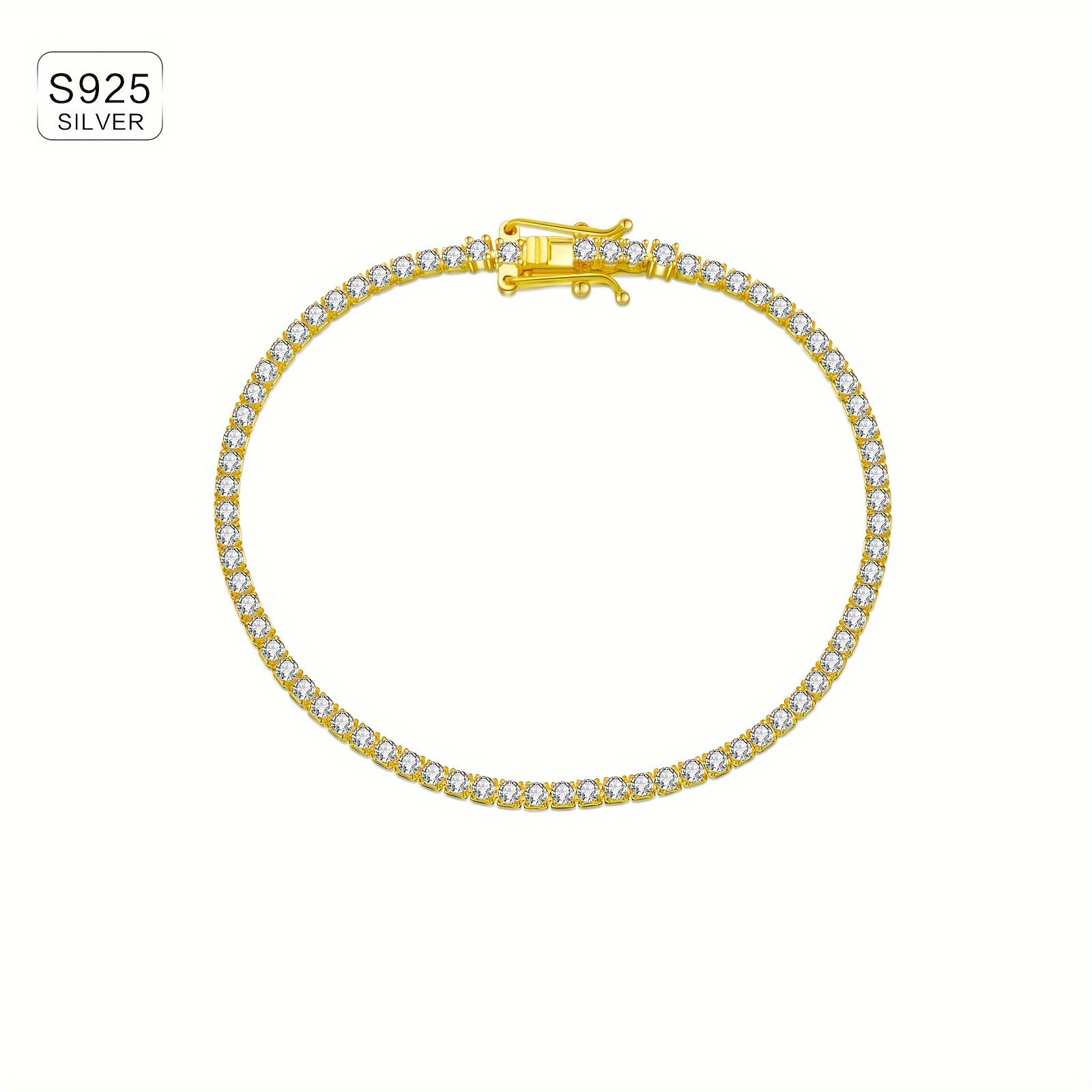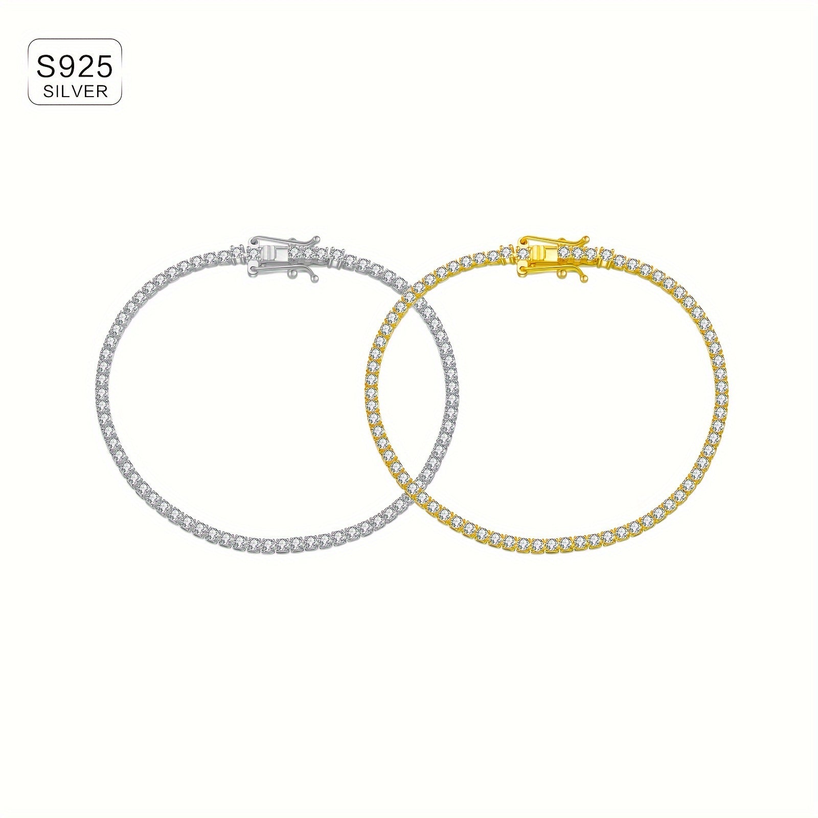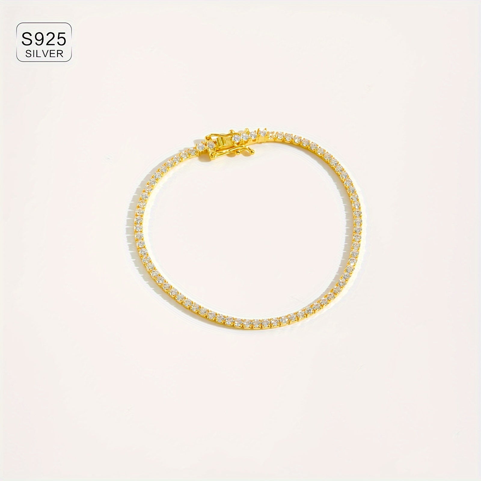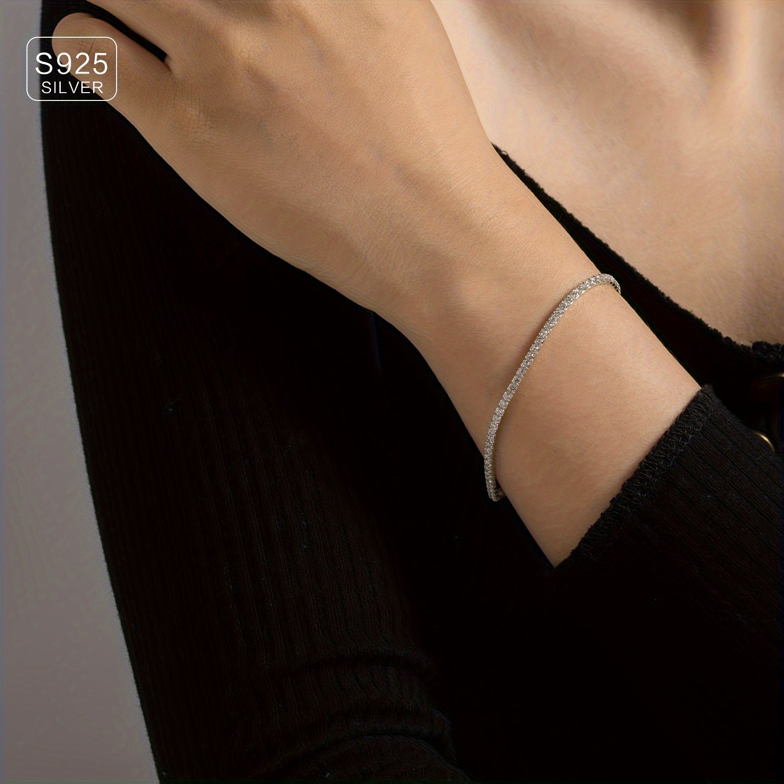 Elegant 925 silver bracelet featuring one full row of sparkling synthetic zirconia, creating a high-end piece of jewelry for women.
