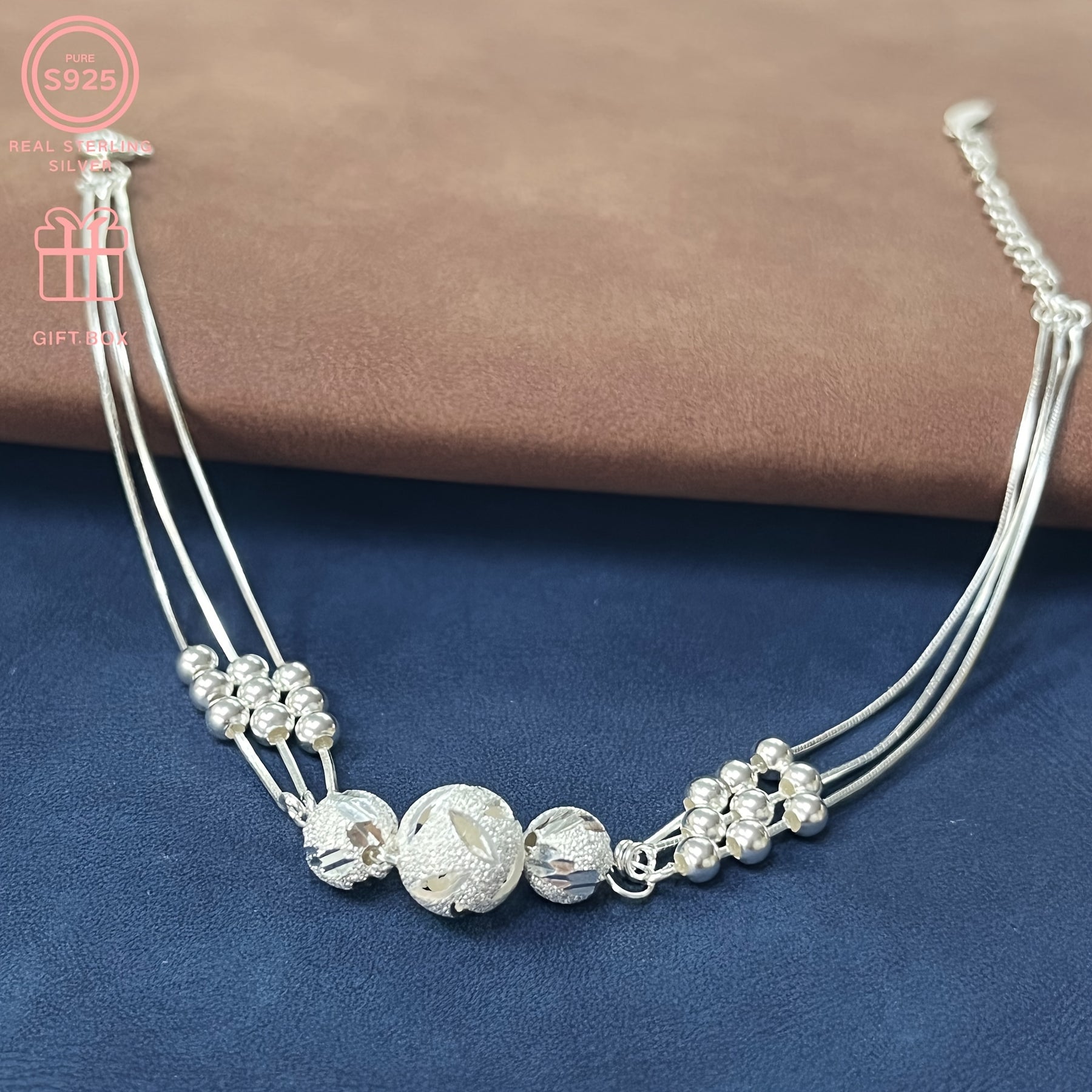 Sterling Silver Bead Bracelet for Women 925 Silver Plated