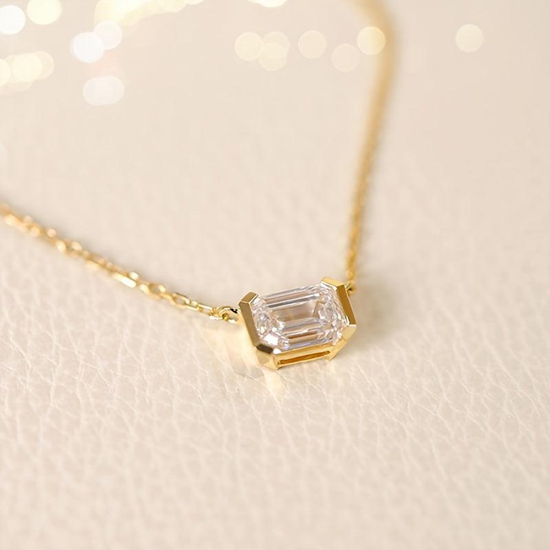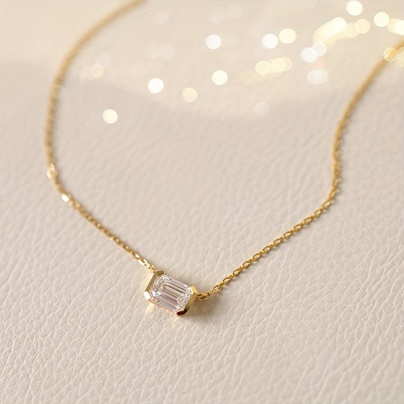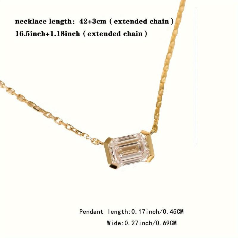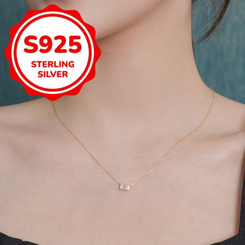 Elegant 925 sterling silver pendant necklace featuring a rectangular geometric design with a synthetic April birthstone zirconia. Perfect for daily wear or as a Valentine's Day gift.
