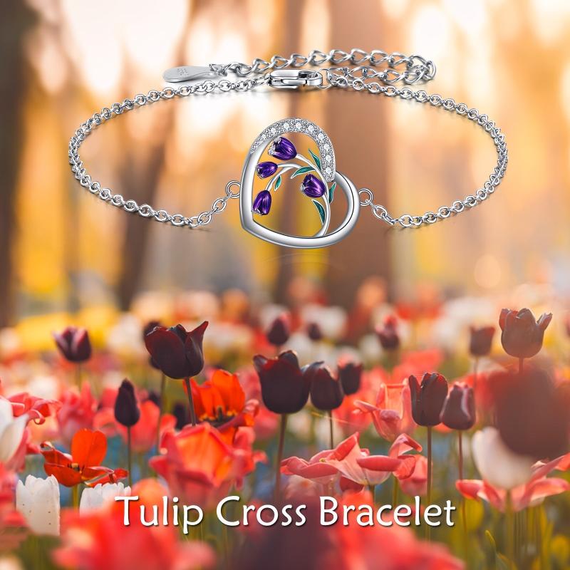 This YFN Tulip Bracelet is a beautiful piece of sterling silver jewelry featuring a delicate tulip flower design. Perfect for women, girls, and mothers, this bracelet makes a lovely gift for any occasion.
