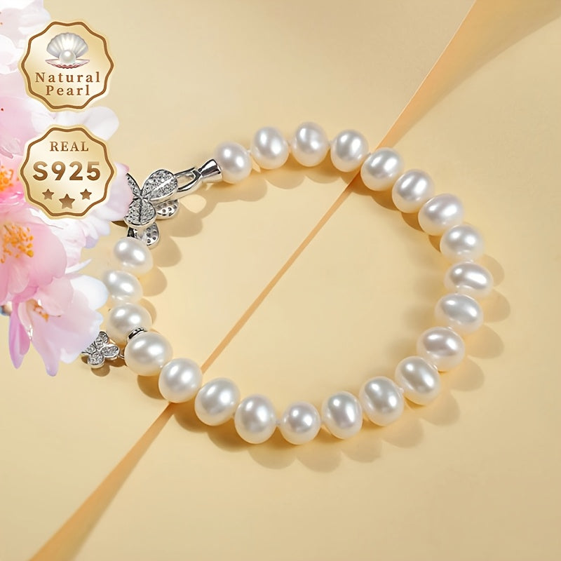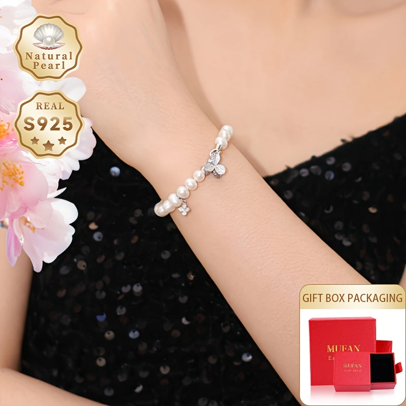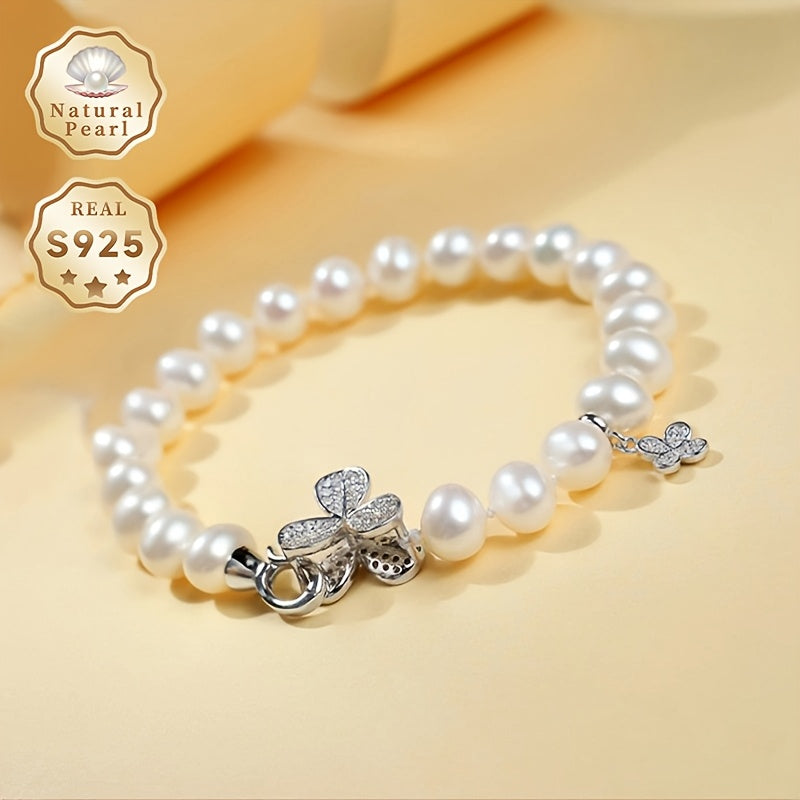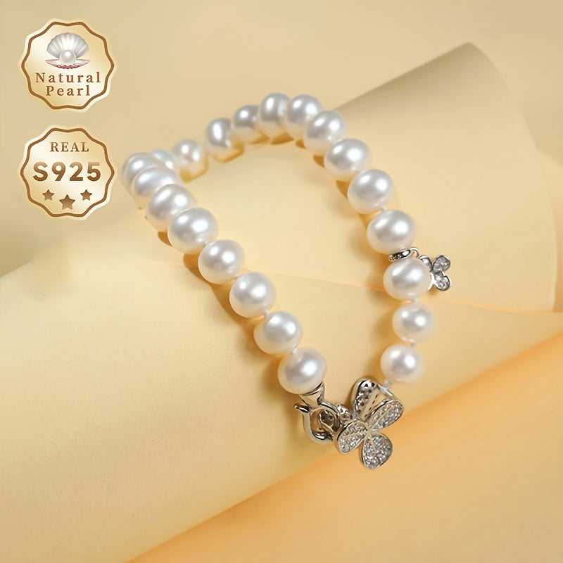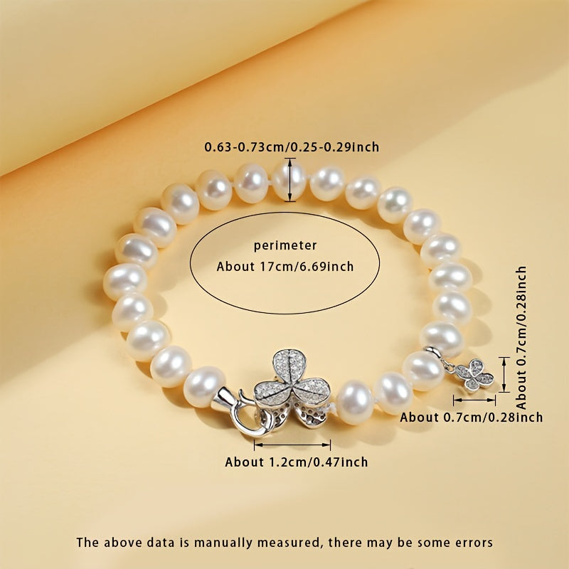 This women's pearl bracelet features a stunning design with natural freshwater pearls measuring 6-7mm. The pearls have a strong shine and slight imperfections, adding to their unique beauty. Crafted with S925 silver for durability and elegance.