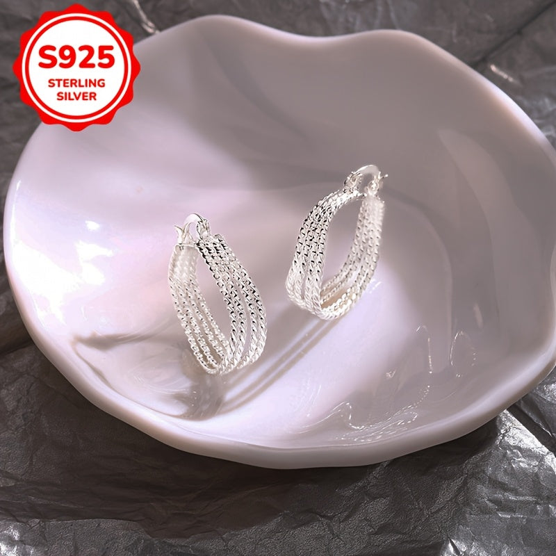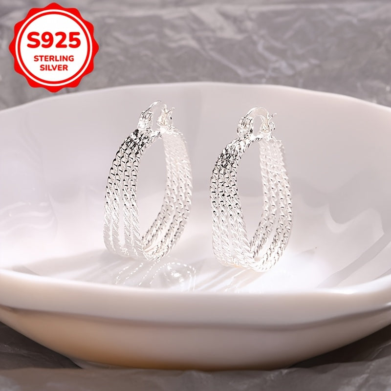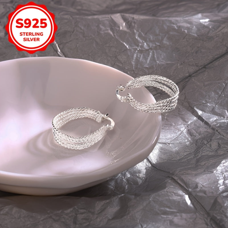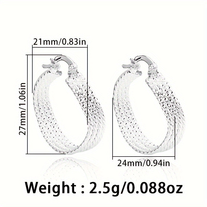 These personalized twist earrings are made of high-quality S925 silver, featuring a textured plain design. They weigh 2.5g (0.088oz) and are stylish and versatile for any occasion.