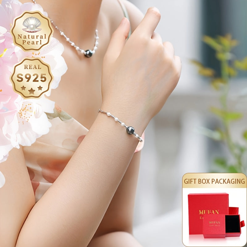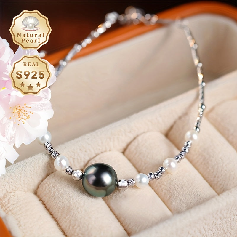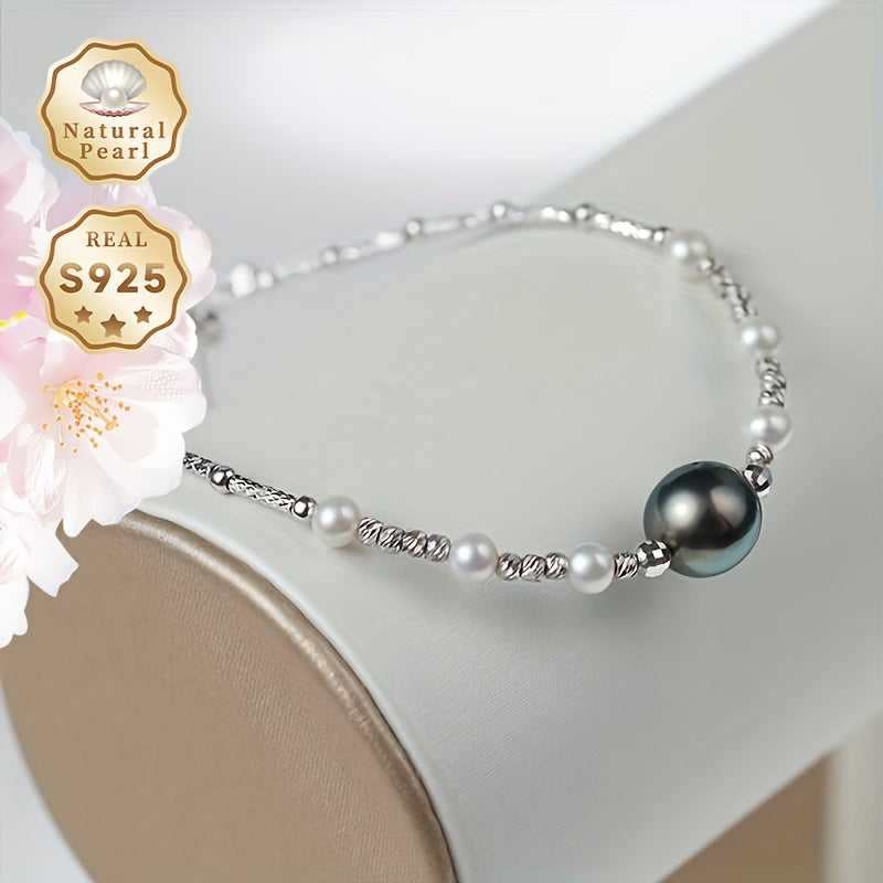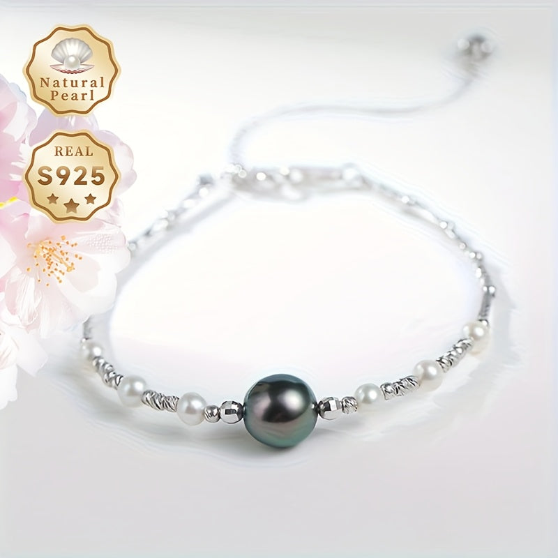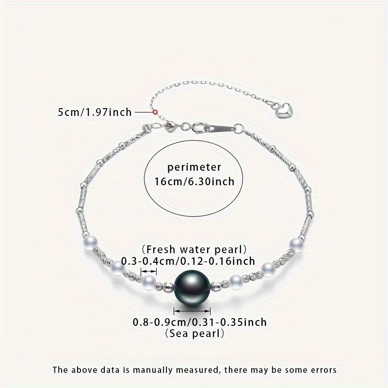 Elegant women's bracelet featuring 8-9mm round sea water Tahitian pearls adorned with 3-4mm freshwater small pearls. A stunning accessory to add to your collection.