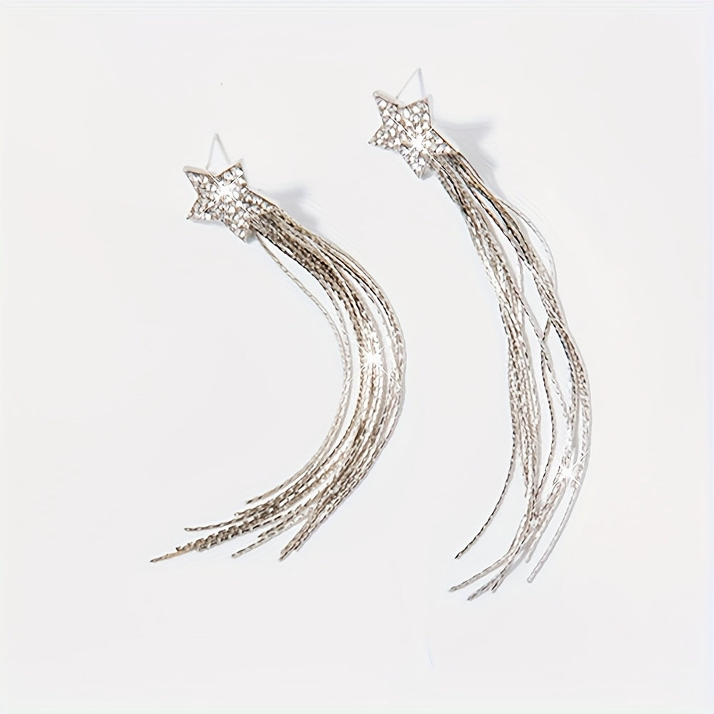 Make a statement with these elegant Vana Elegance earrings featuring star drop dangles. Crafted with 925 sterling silver needle and alloy, these long tassel ear drops are perfect for parties and banquets.