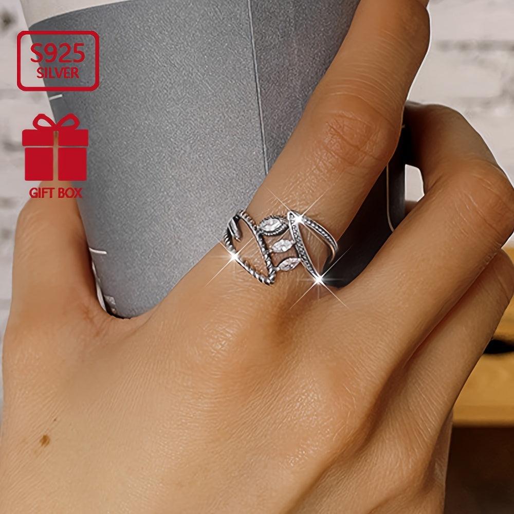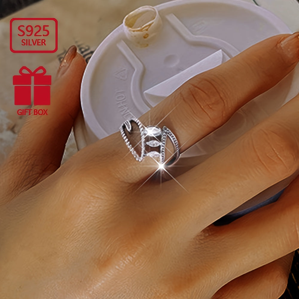 Add a touch of elegance to your look with this wide band ring crafted from 925 silver featuring synthetic zirconia stones. Its fashionable design will complement any outfit.
