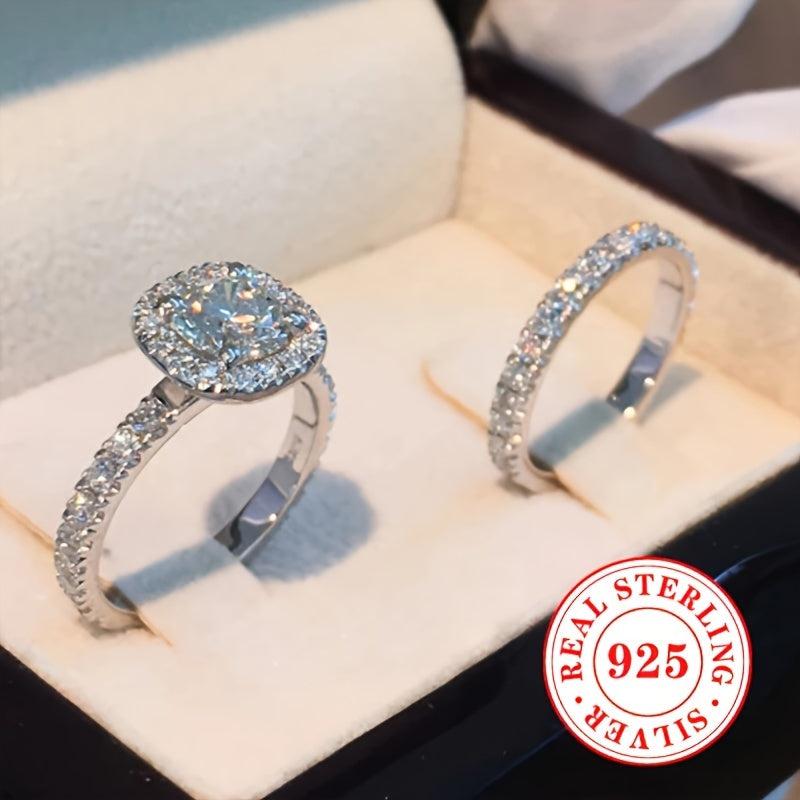 Elegant and eye-catching women's set ring made of pure S925 silver with sparkling synthetic zirconia, perfect for engagements, weddings, and banquets.