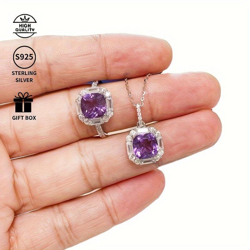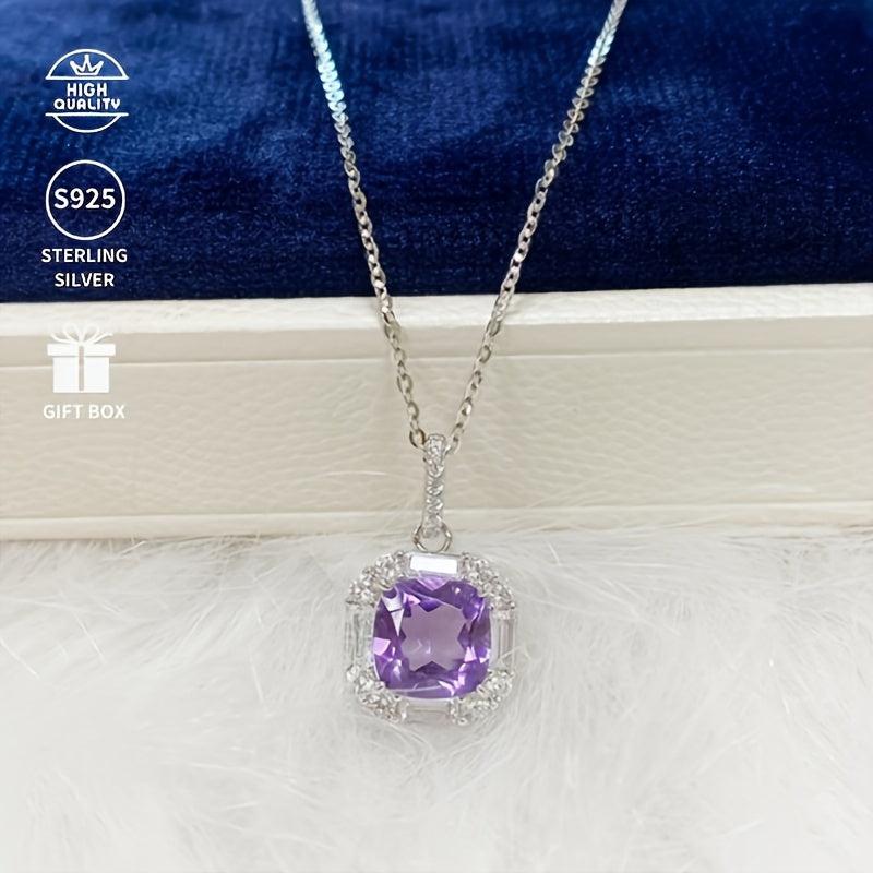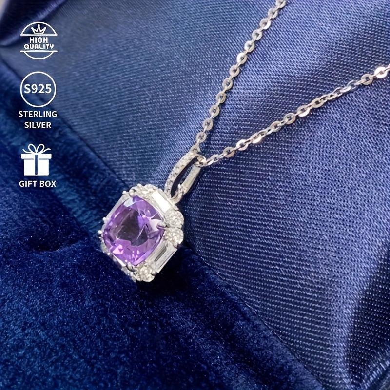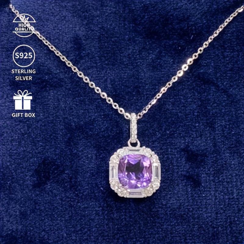 Elegant and retro design necklace with a purple natural stone pendant, made of S925 pure silvery material. Perfect for daily wear or as a special gift.