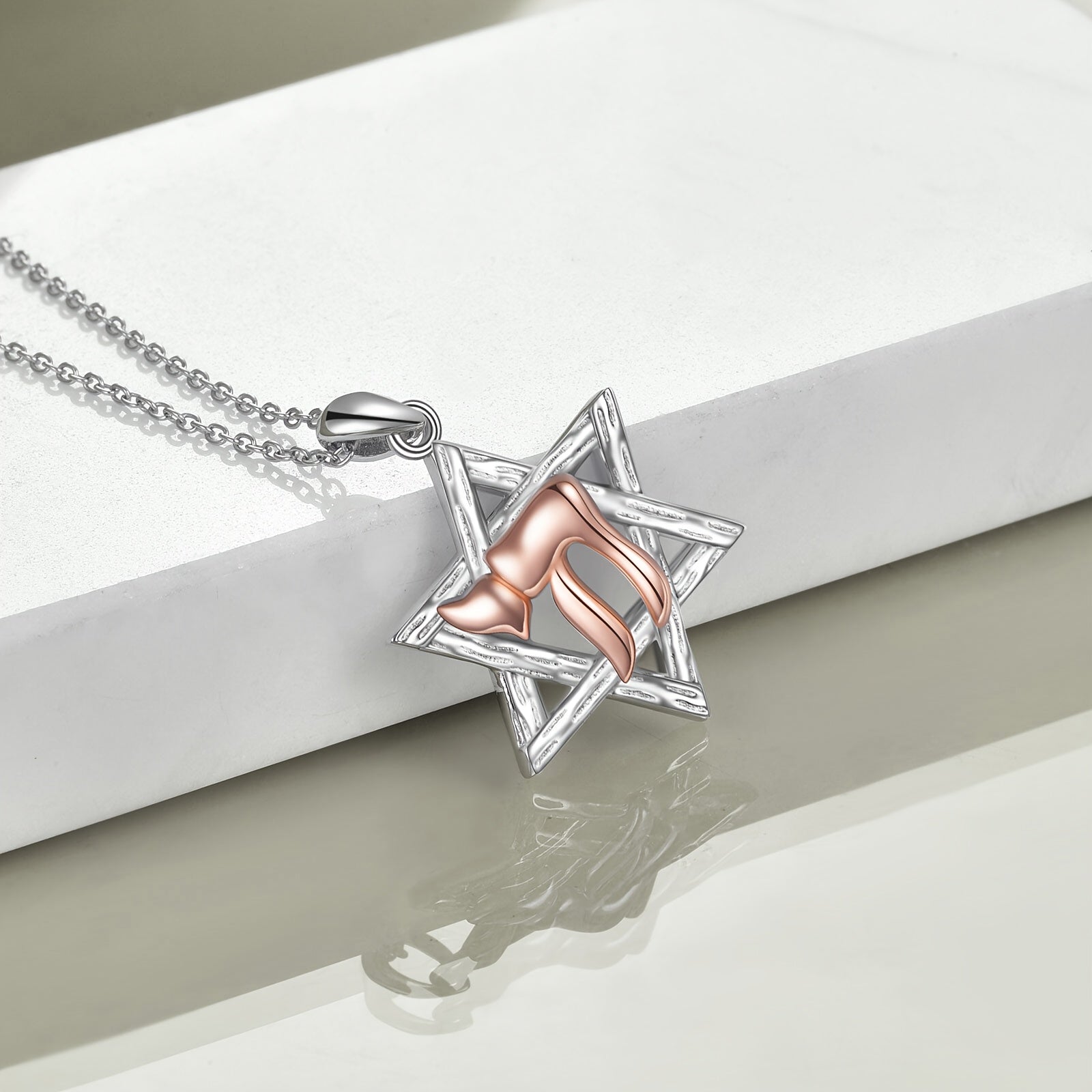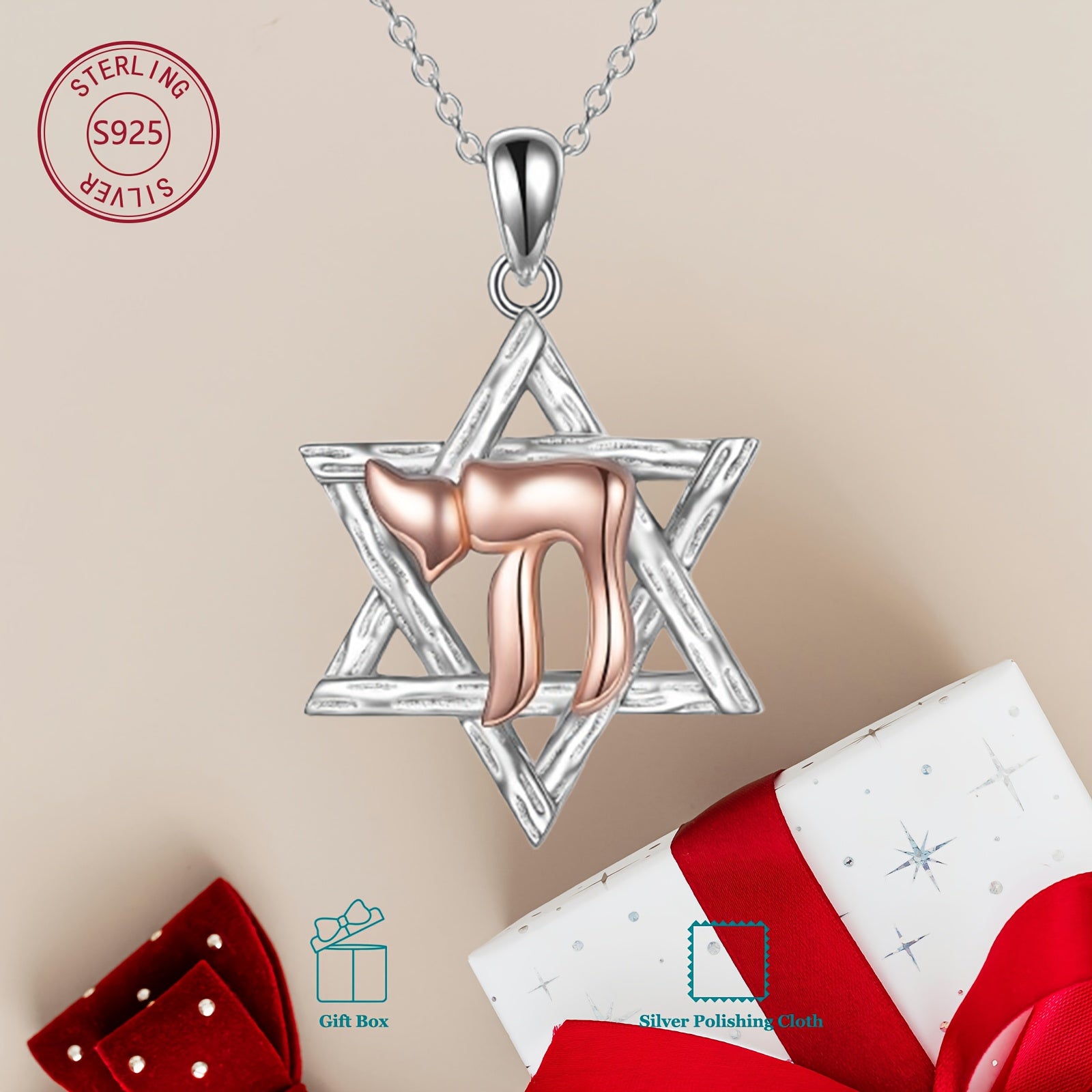This Sterling Silver Jewish Token Jewelry features a Chai Life Pendant with Star of David design. Comes with a 45-inch chain for easy wear.