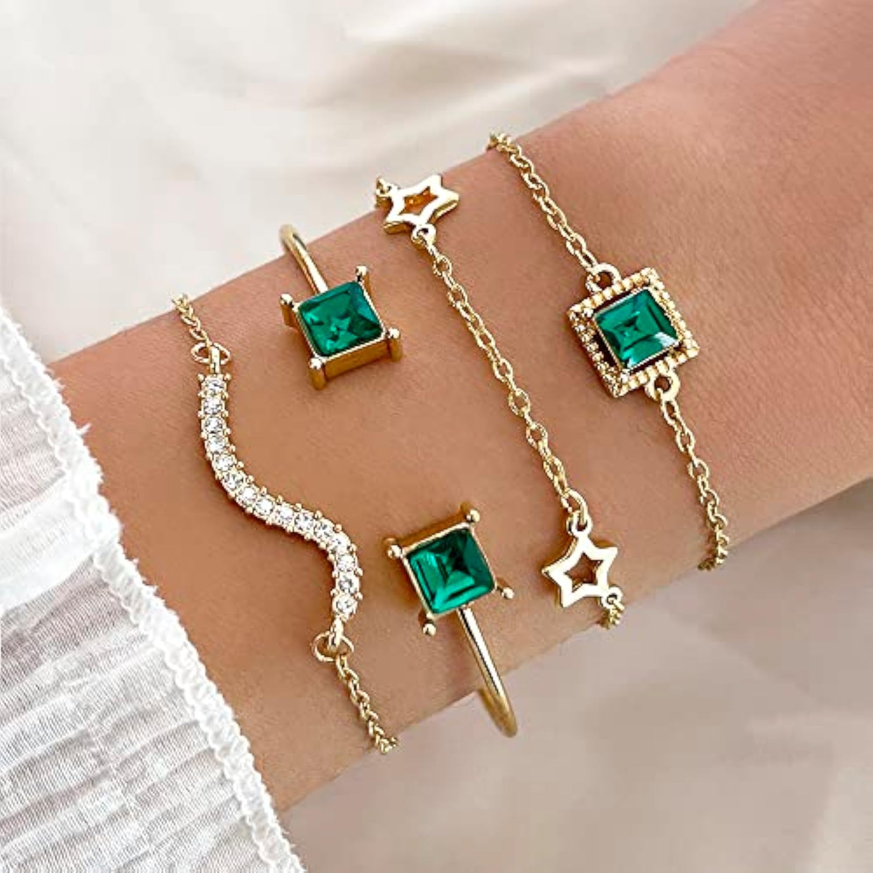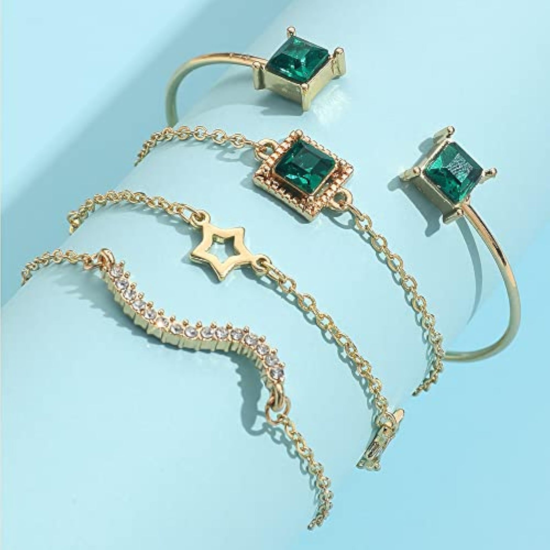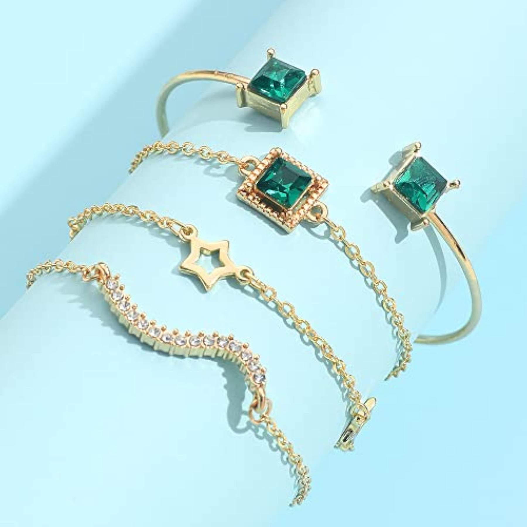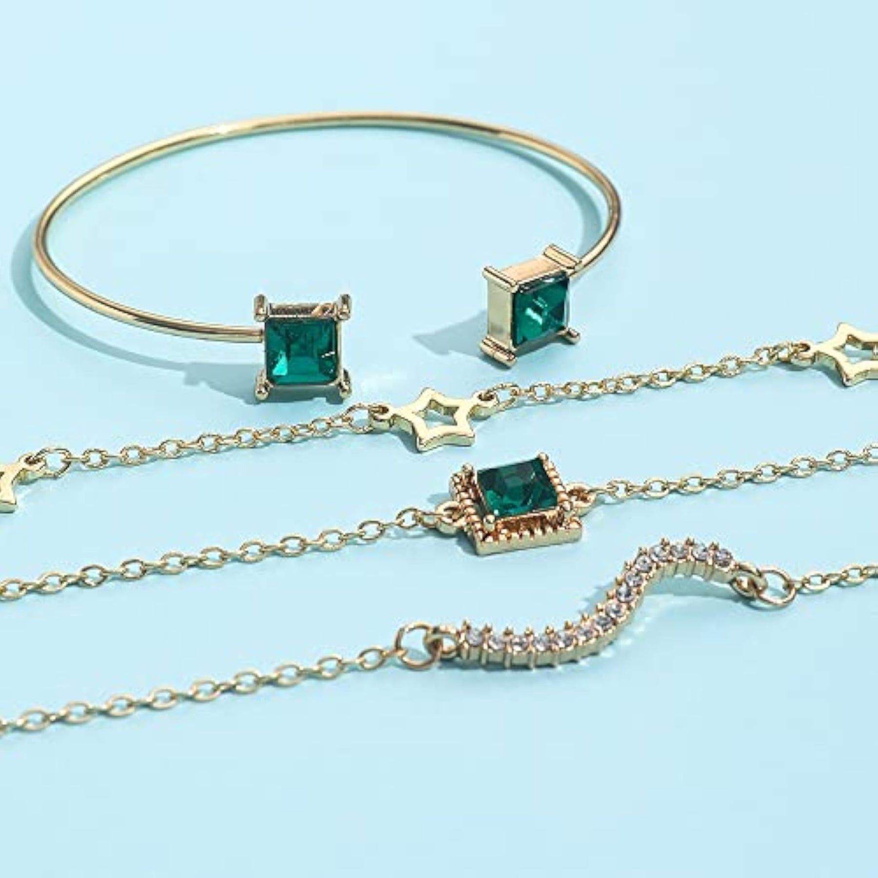 Elegant and stylish green crystal bangle bracelet set that adds a touch of glamour to any outfit.