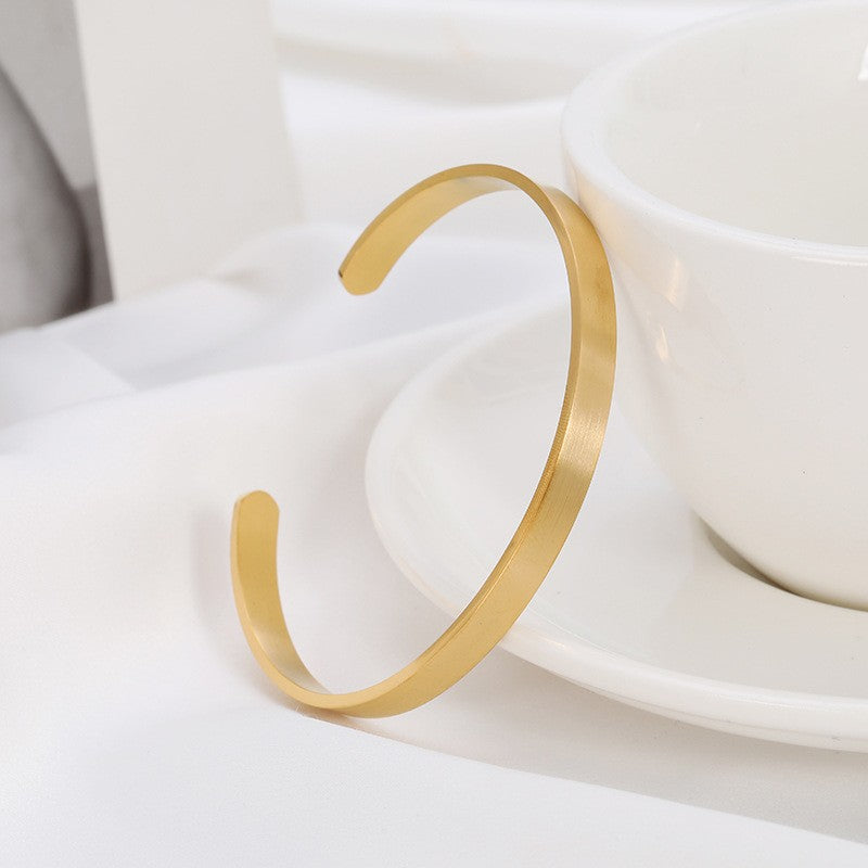 Stay fashionable with this open adjustable stainless steel bracelet that complements any outfit.