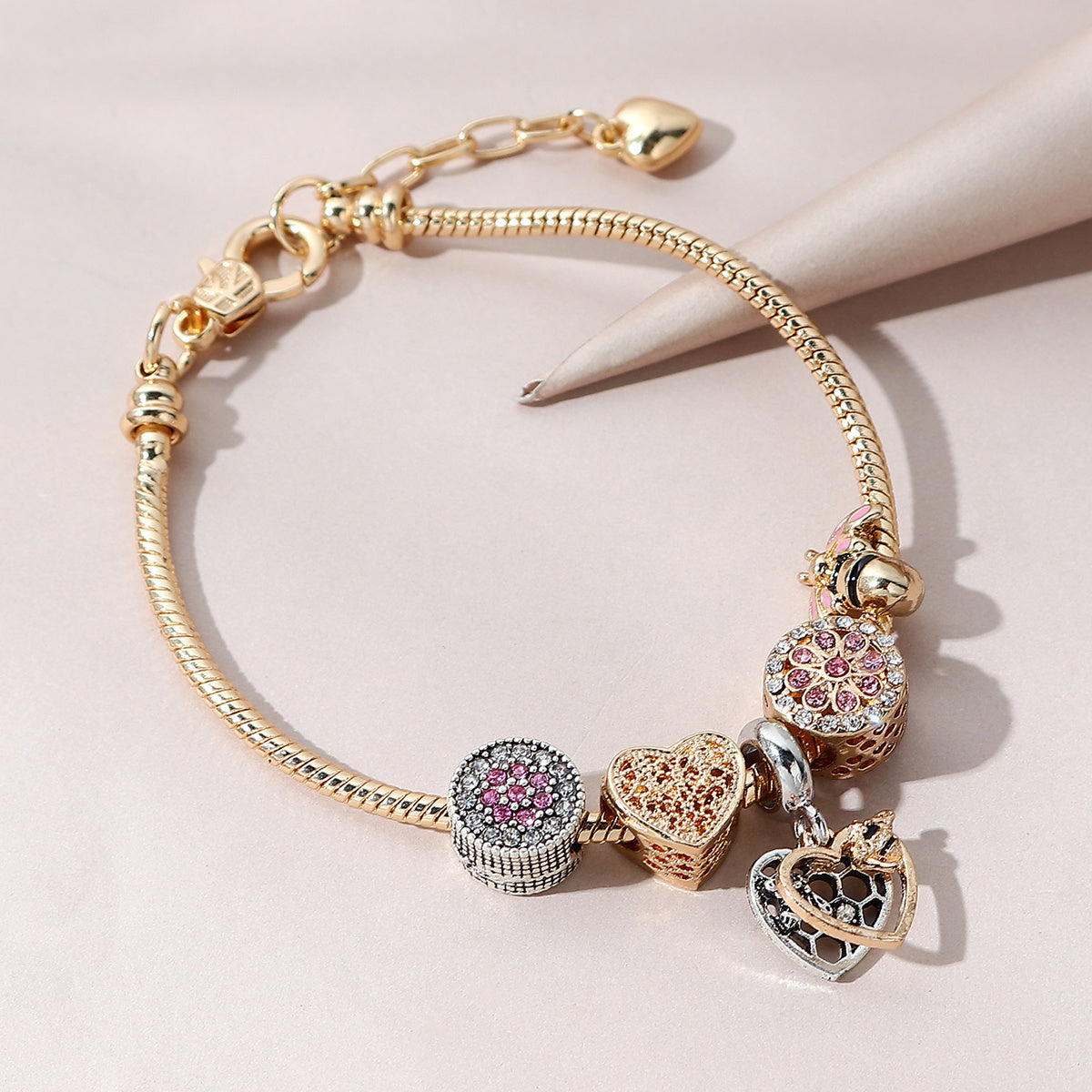 Adorn your wrist with this beautiful bracelet featuring bee charm and bead decoration. It adds a touch of nature-inspired elegance to your style.