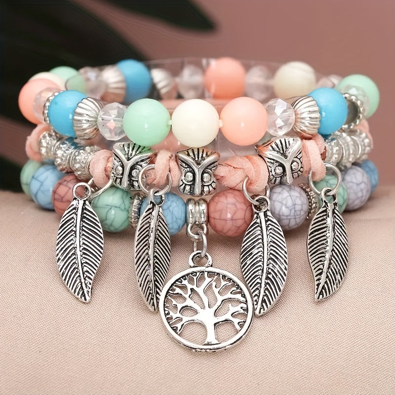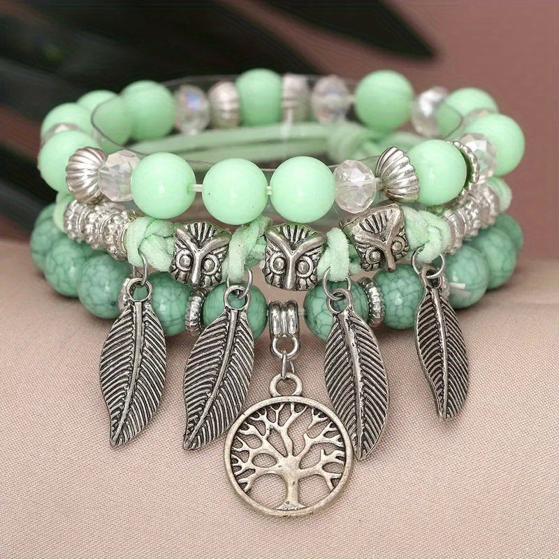 Enhance your style with this creative crystal multilayer owl beaded bracelet. Perfect for party occasions.