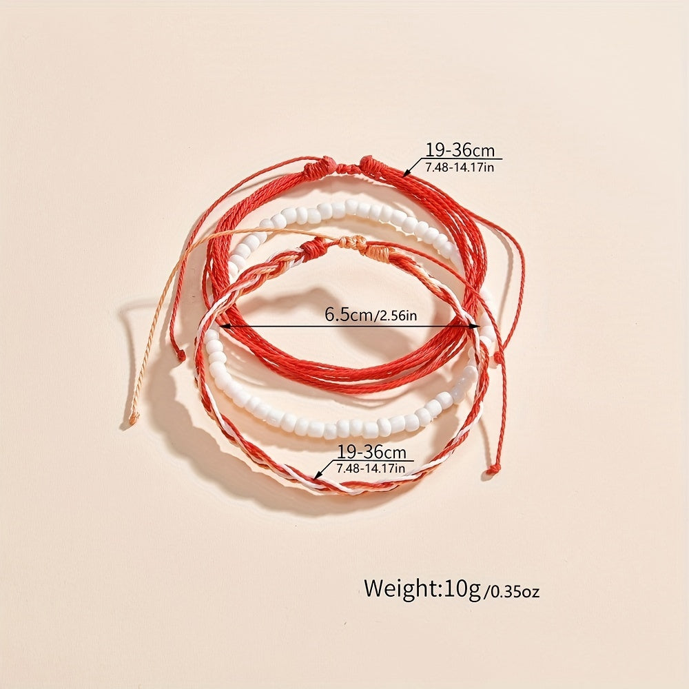 Add a pop of color to your ankle with this bohemian anklet featuring colorful braided design and mini rice beads. Perfect for summer vibes!