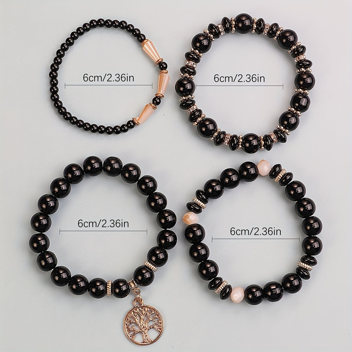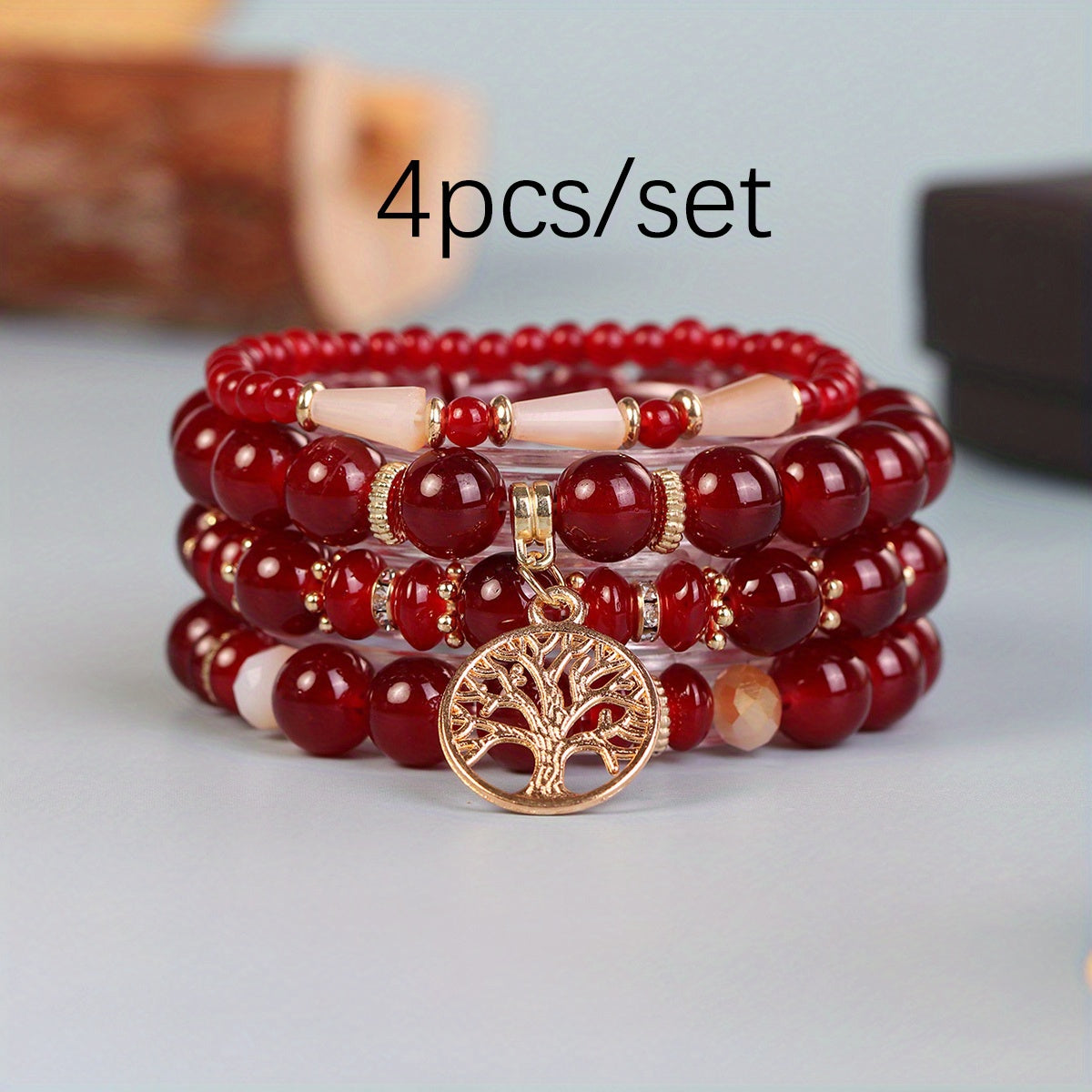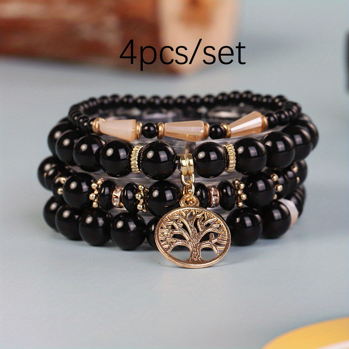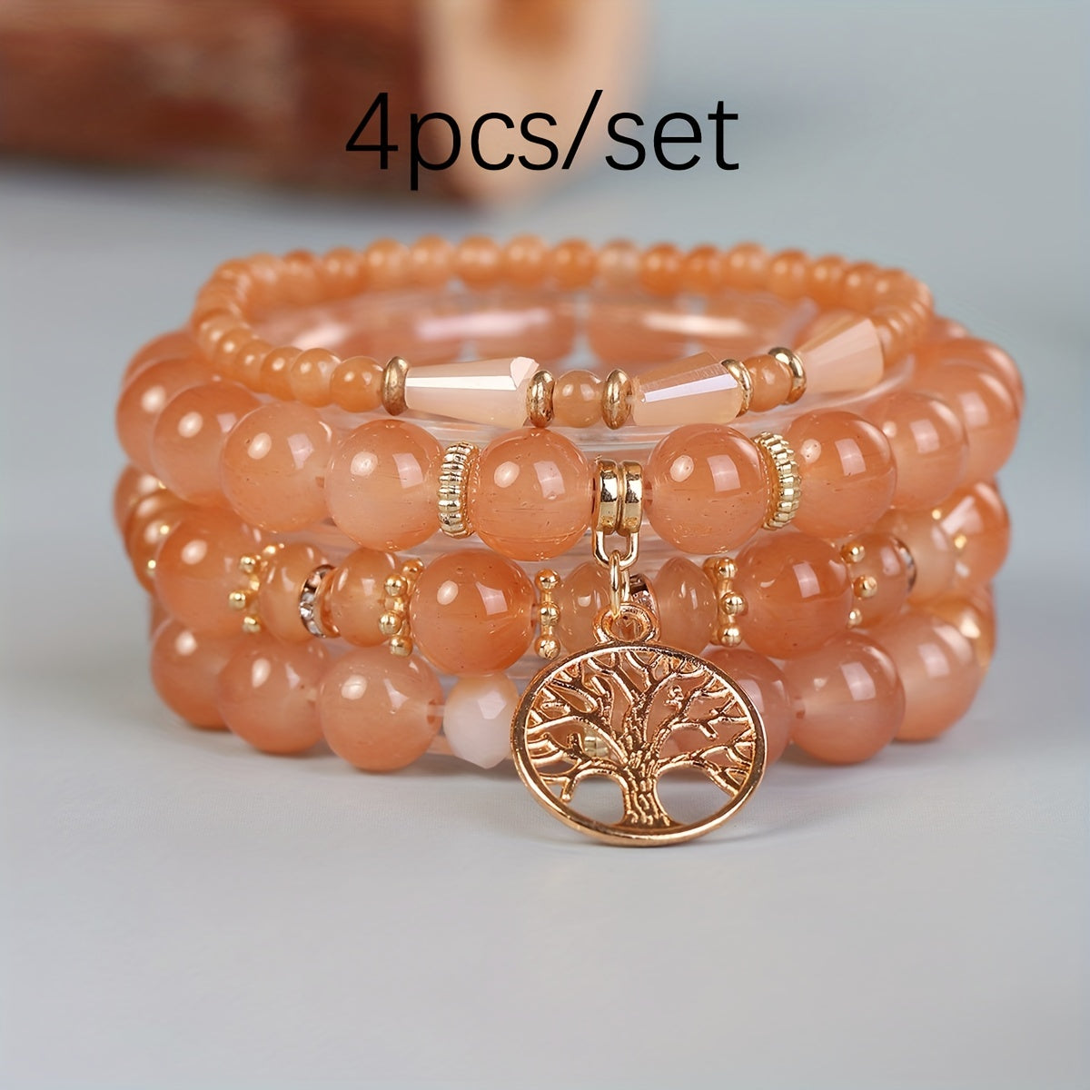 Stay stylish this summer with this 4pc bohemian layer glass bracelet set featuring a life tree pendant design. Perfect for both men and women.