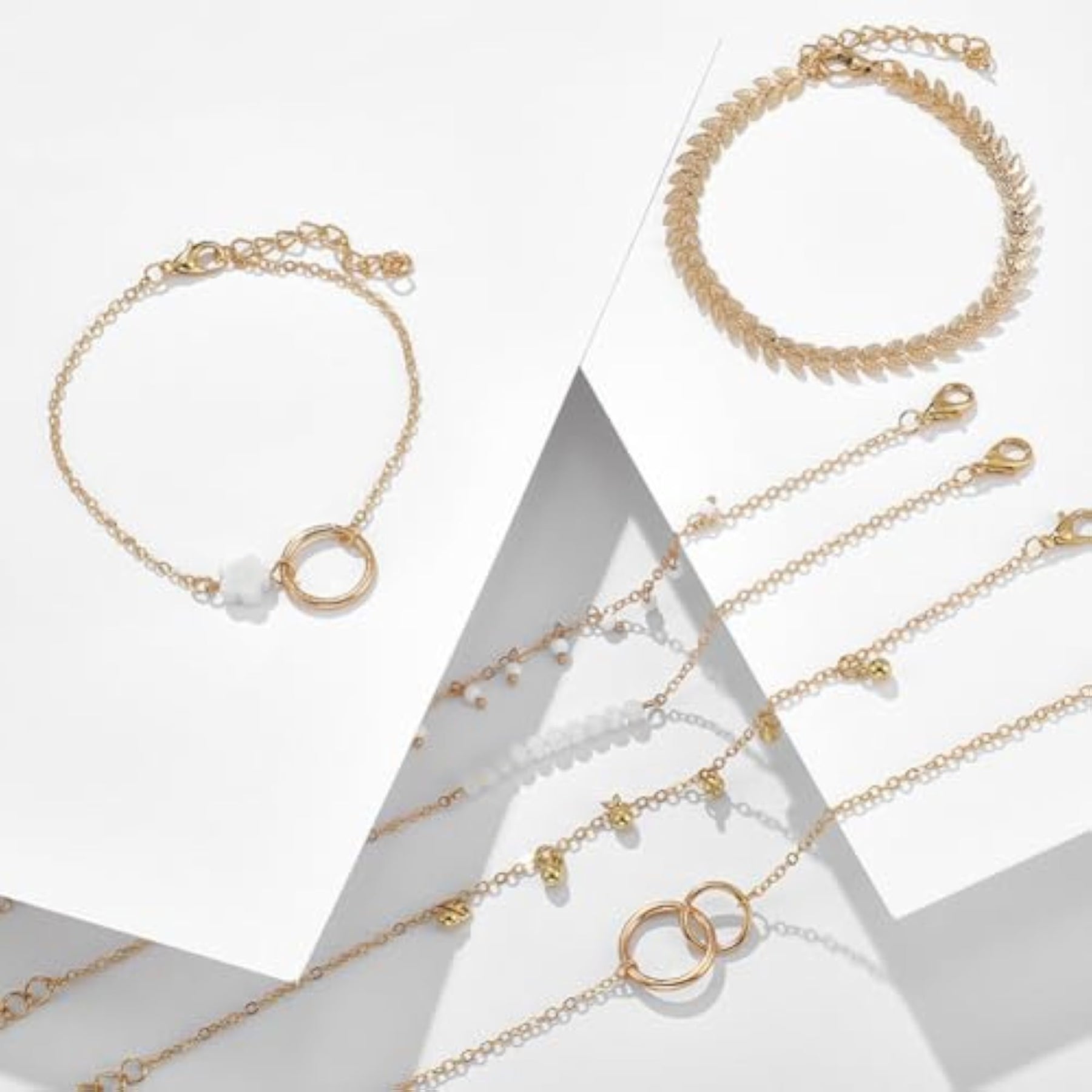 Enhance your wrist with this stylish multilayer plated bangle bracelet set featuring six elegant pieces. Perfect for adding a touch of glamour to any outfit.