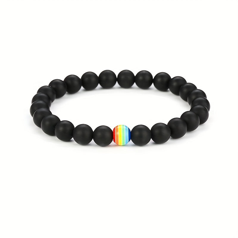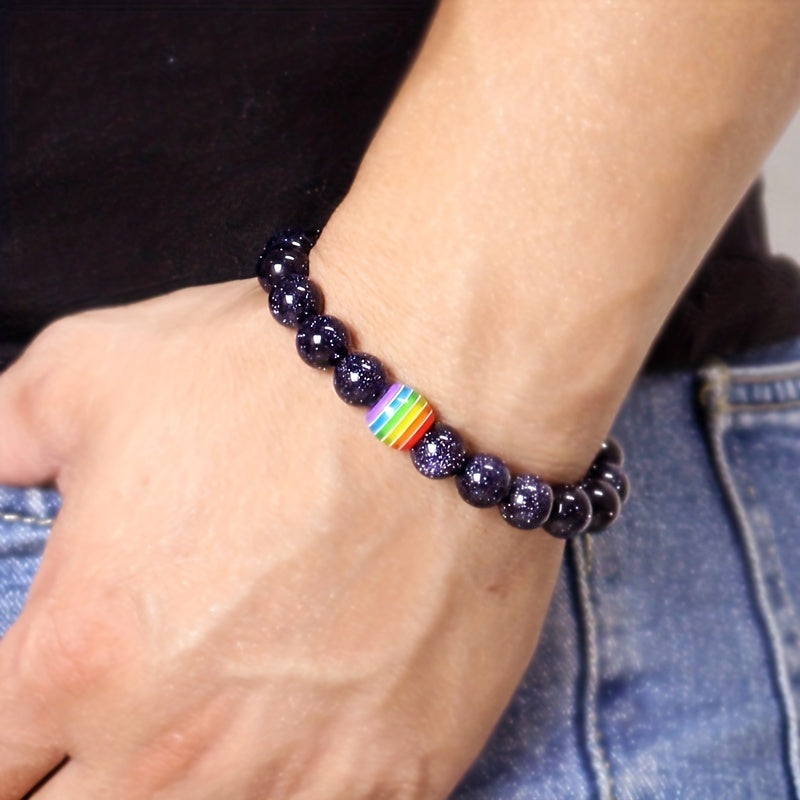 This colorful yoga bracelet features a combination of planet and tiger eye stones with turquoise accents. Perfect for adding a touch of nature-inspired style to your outfit.