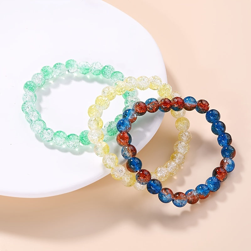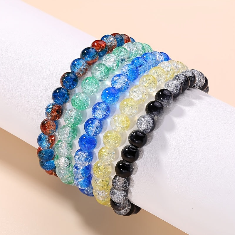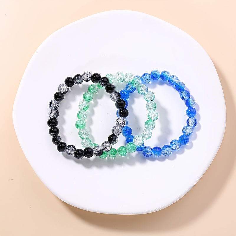 This elegant couple bracelet set features crystal crackle two tone beaded designs, making it a perfect Christmas gift for your loved one.