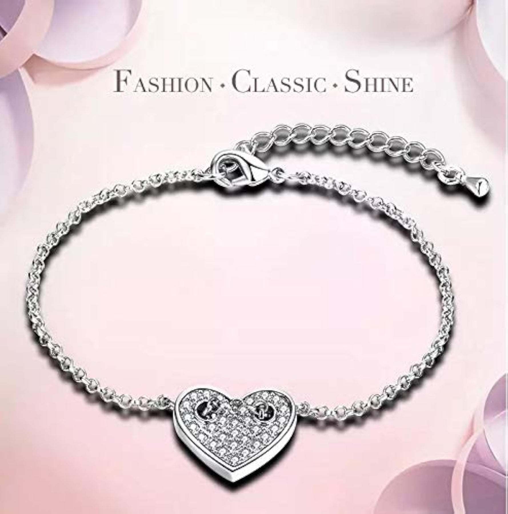 Show your love with this stunning Crystal Heart Charm Plated Bracelet, perfect for Valentine's Day.