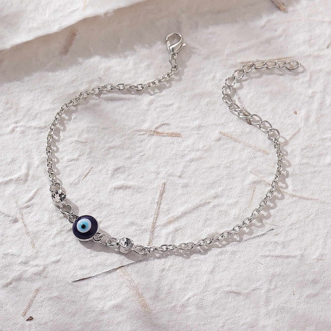 Add a touch of mystique to your look with this devil's eye shape beads chain anklet featuring inlaid rhinestones. Perfect for adding a boho chic vibe to your outfit.