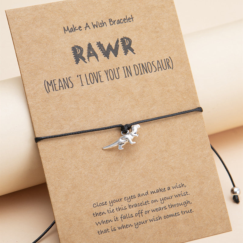 This alloy dinosaur braid bracelet is a perfect relationship jewelry gift. It features a unique design with a dinosaur charm and adjustable rope for a comfortable fit.