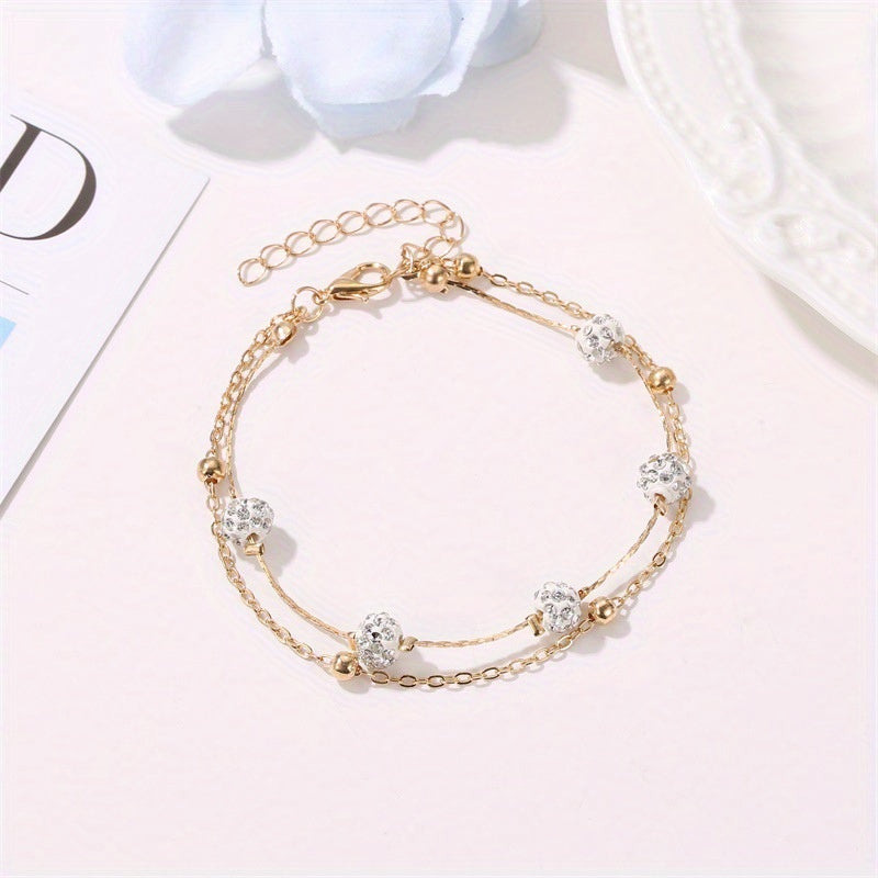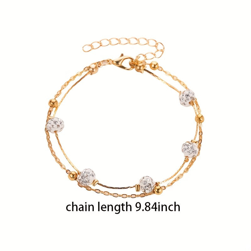 This double layer anklet features copper construction and synthetic gem inlays for a stylish look.