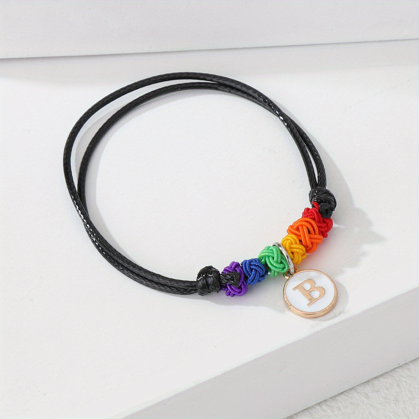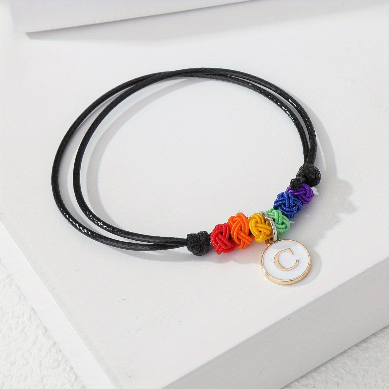 Celebrate Gay & Lesbian Pride Month with this colorful double-sided letter pattern pendant braided anklet. Perfect for adding a touch of pride to your outfit.