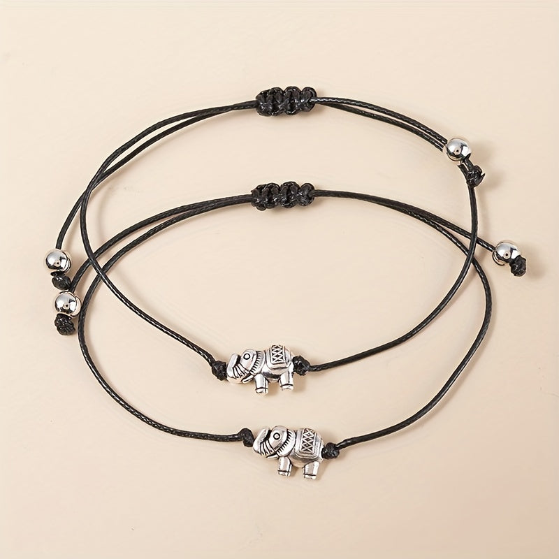 Add a touch of style to your daily wear with this elegant elephant string bracelet set. Perfect for women and girls, this 2-piece hand jewelry decor is a must-have accessory.