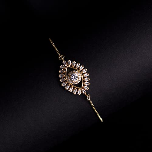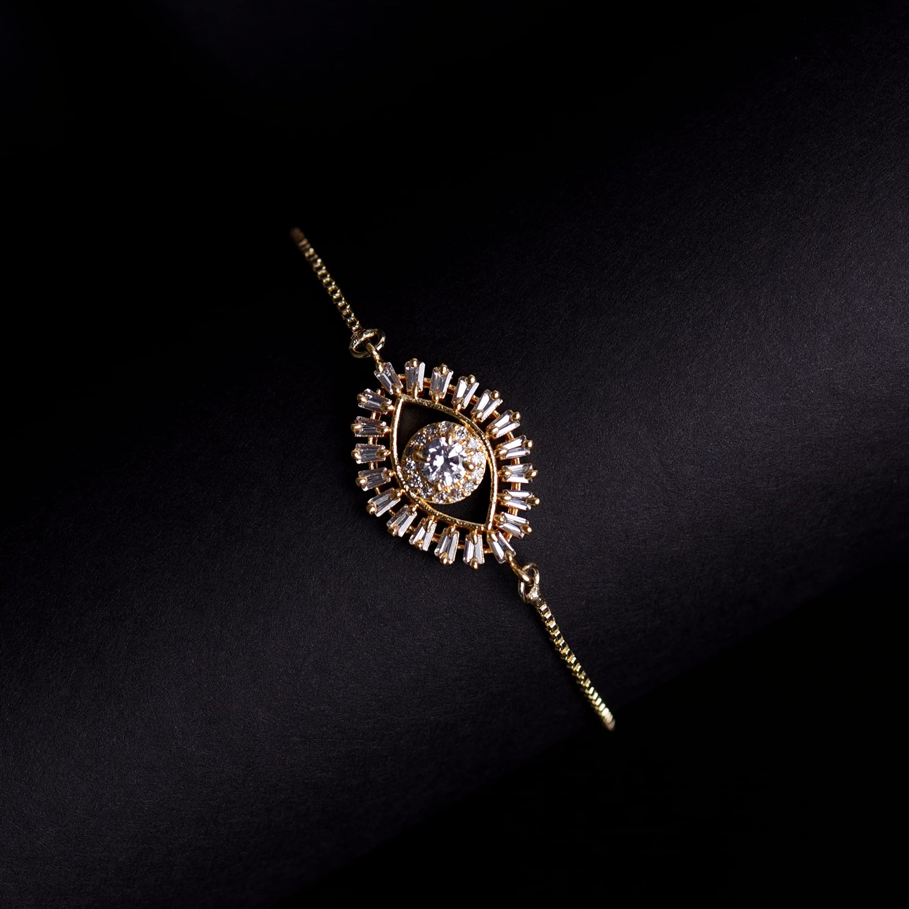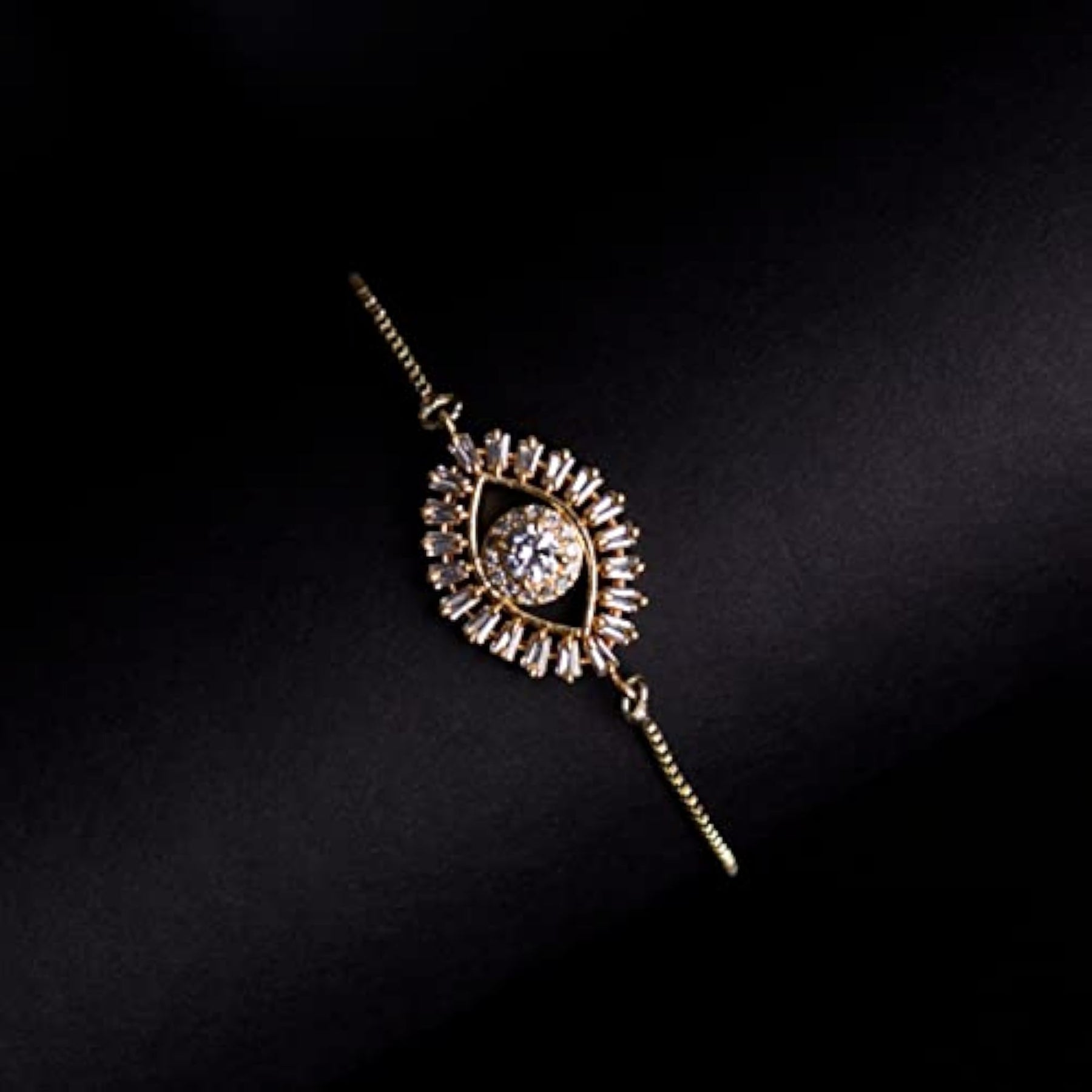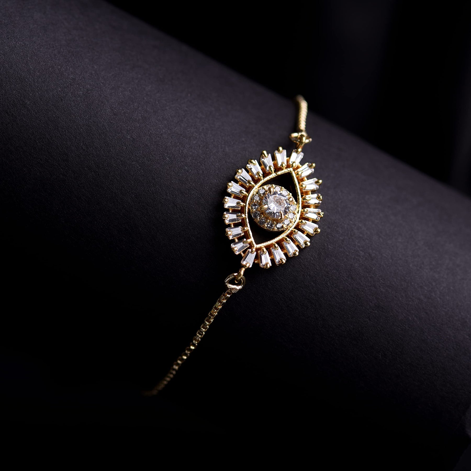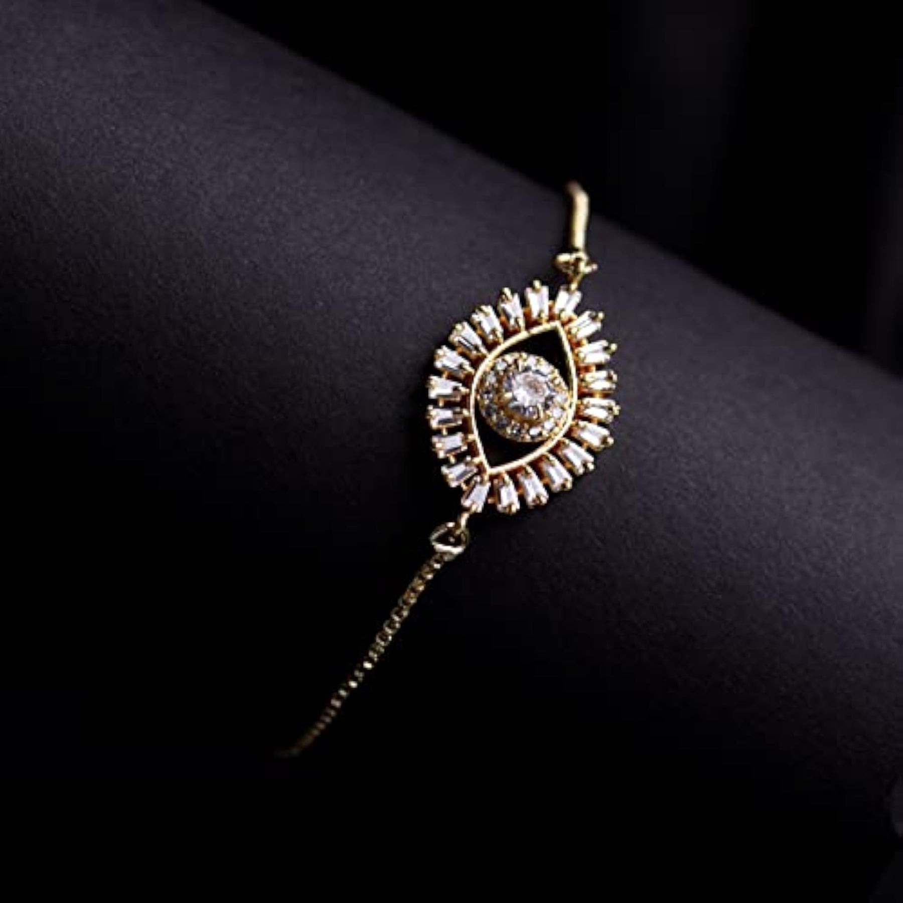 This stunning Evil Eye charm bracelet is adorned with zircon diamonds, perfect for women and girls who love stylish accessories.