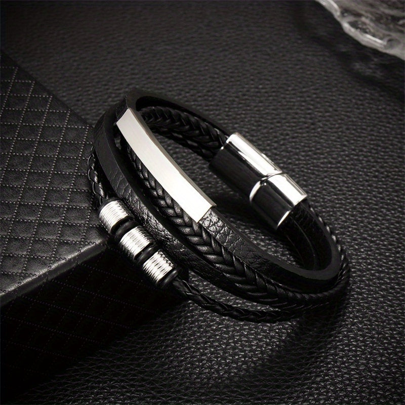 Add a touch of classic style to your look with this faux leather braided rope bracelet. Suitable for both men and women, this bracelet is a versatile accessory.