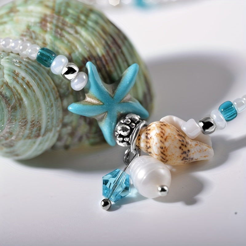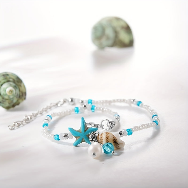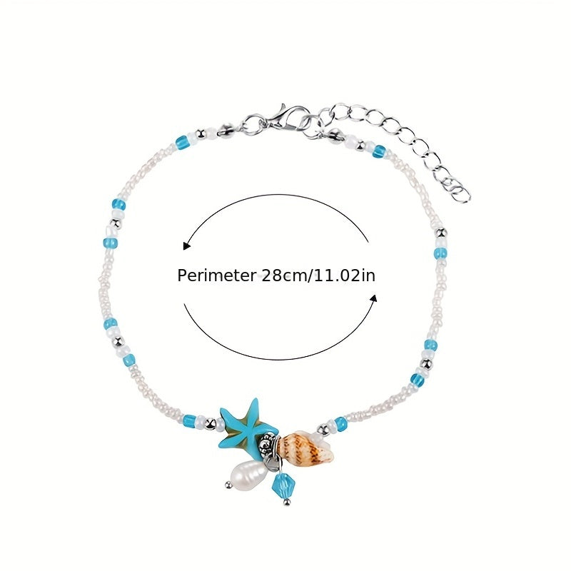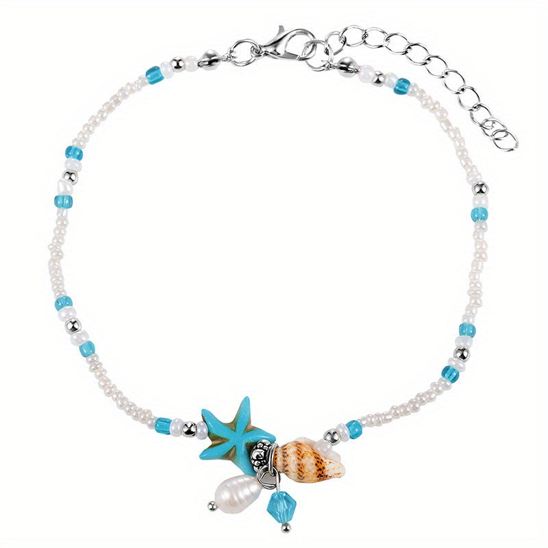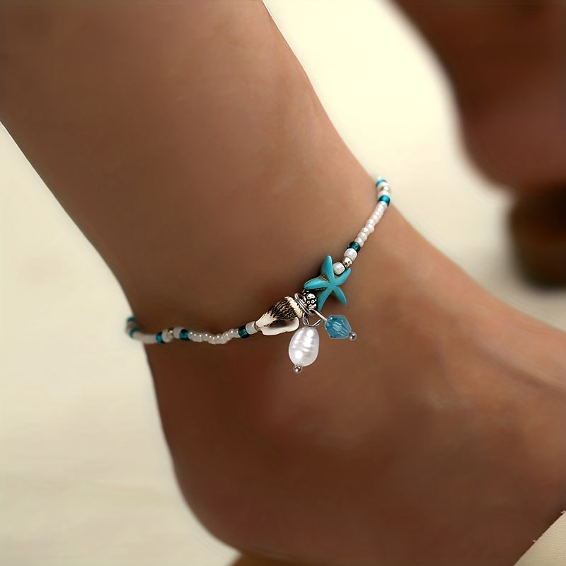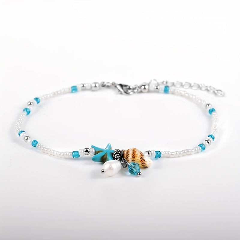 Add a touch of ocean style to your look with this faux pearl pendant beaded anklet featuring mini rice beads. Perfect for a beach outing or casual wear.