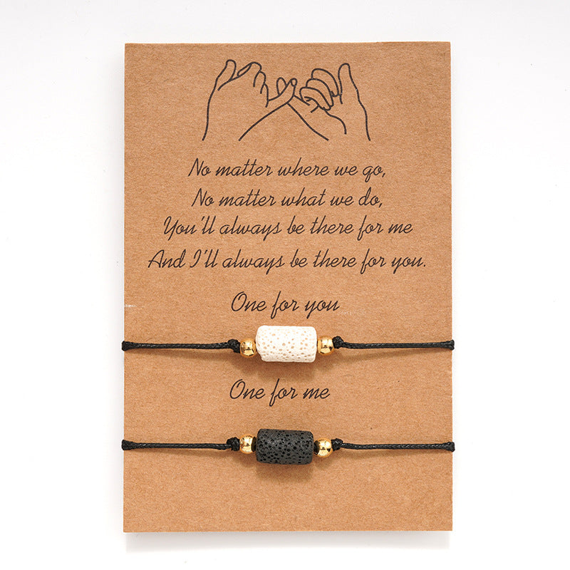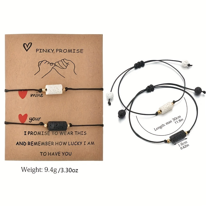 This set includes 2 faux volcanic stone bracelets, perfect for couples. The braided design adds a stylish touch to the bracelets. Adjustable to fit different wrist sizes, these bracelets make a thoughtful gift for loved ones.