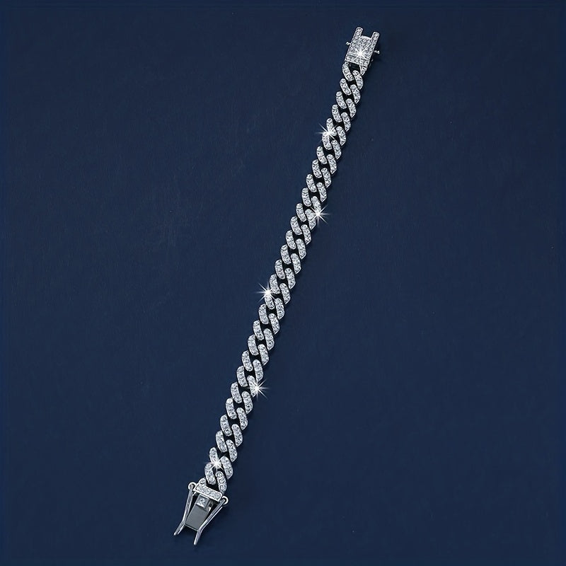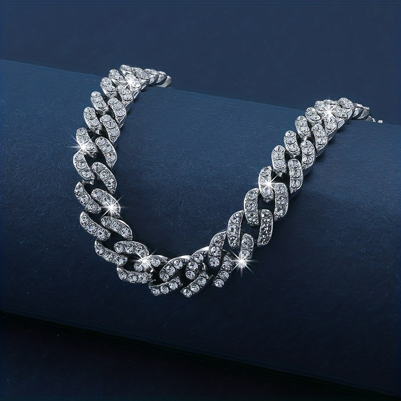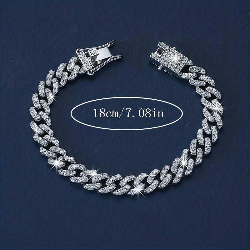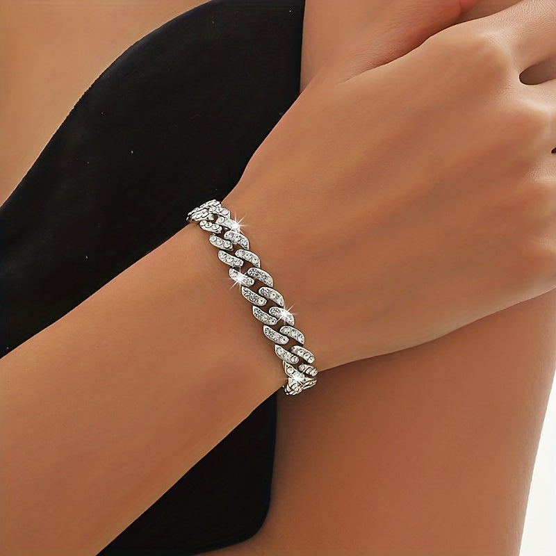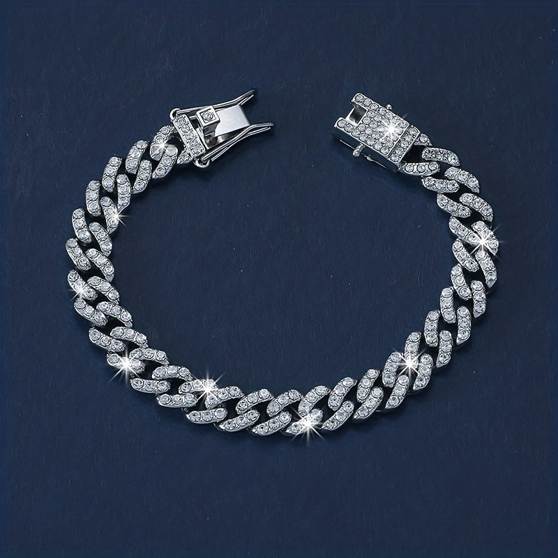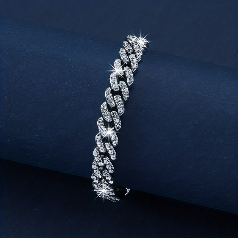 Enhance your style with this stunning glitter rhinestone Cuban chain bracelet. Perfect for daily wear or special occasions, this bracelet will elevate any outfit.