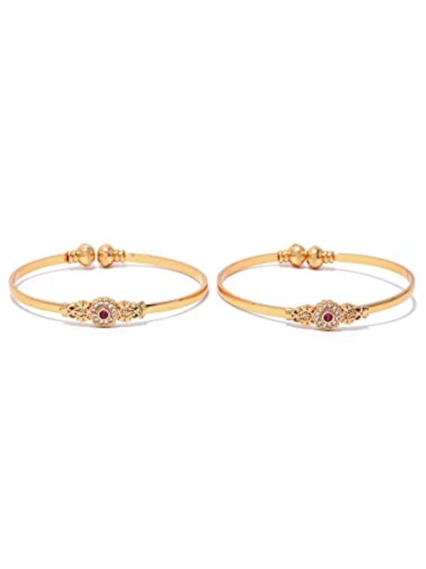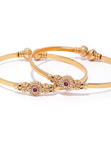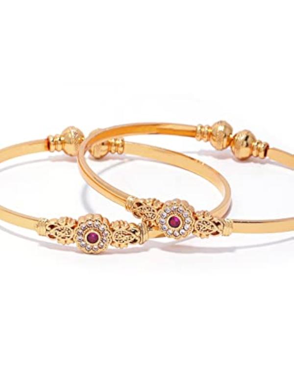Enhance your attire with this stunning set of 2 gold-plated bangles adorned with pink stones. The adjustable design ensures a comfortable fit.