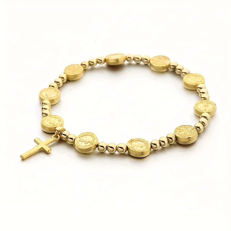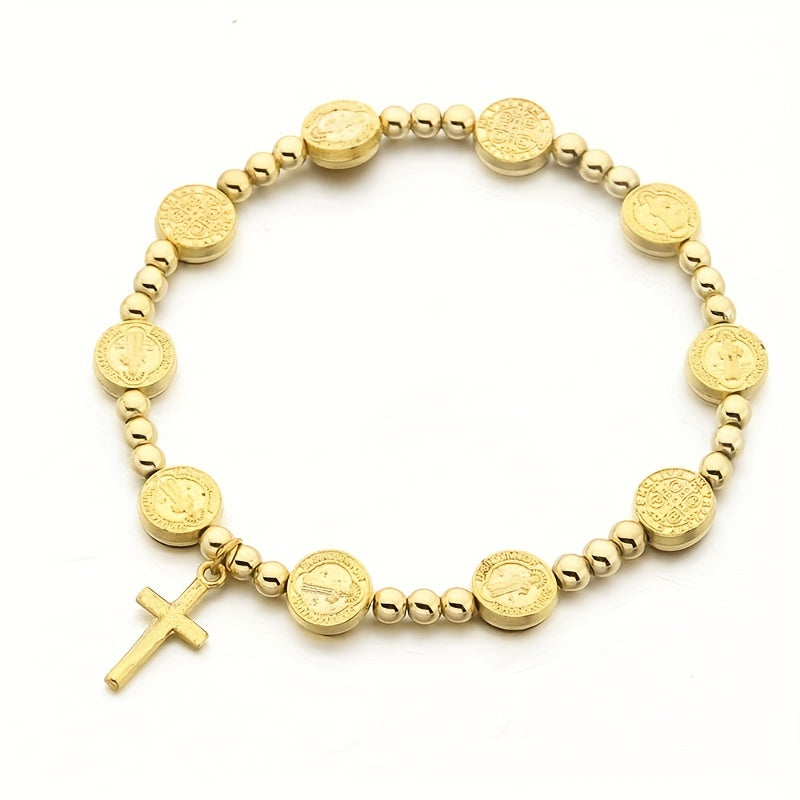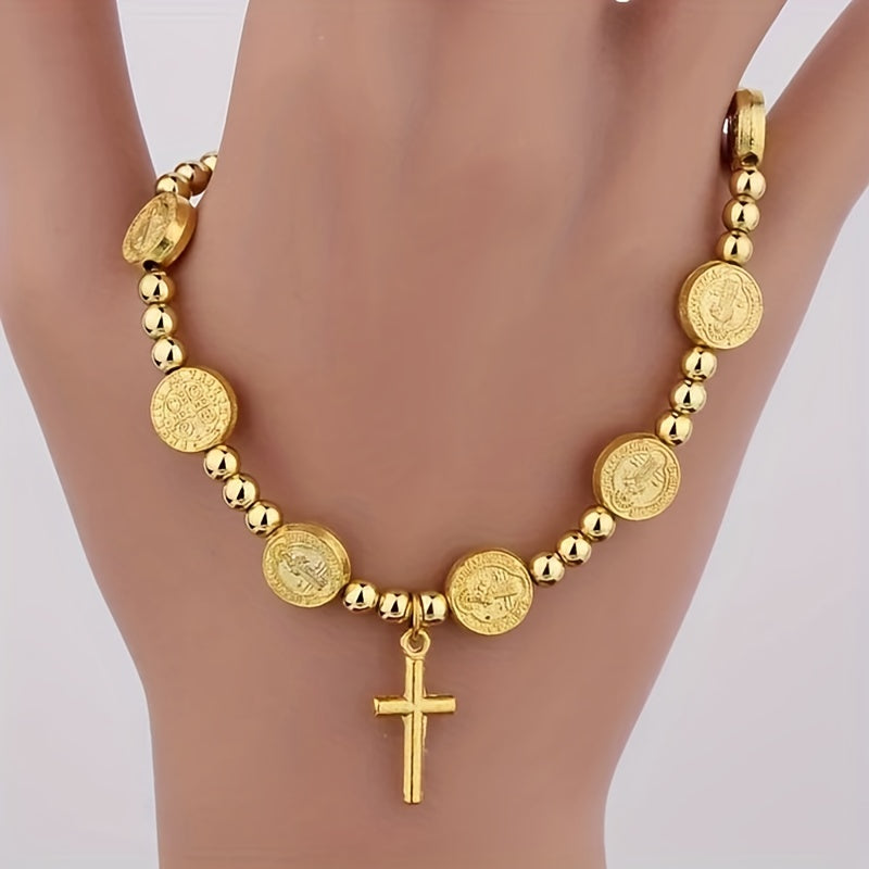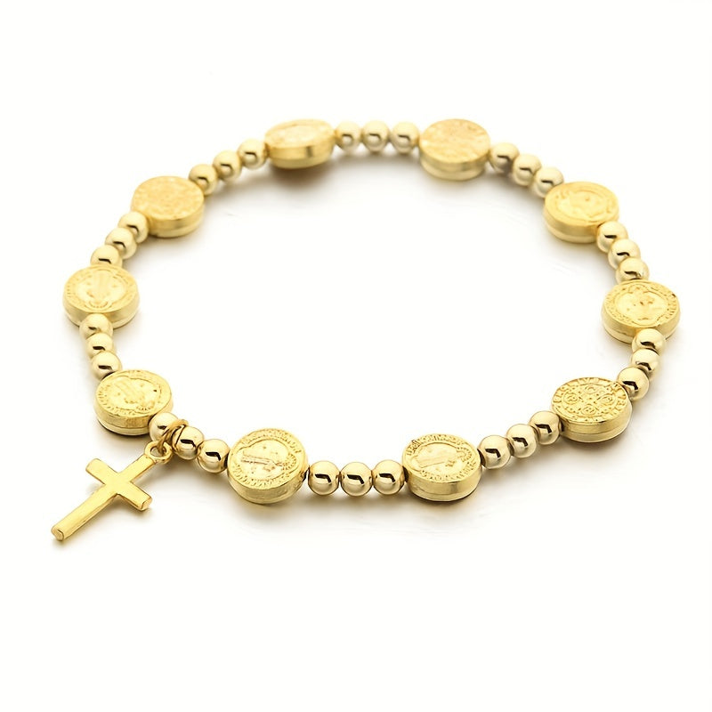This exquisite bracelet features a golden cross and rosary beads, creating a stunning piece of Jesus jewelry. Perfect for religious occasions or everyday wear.