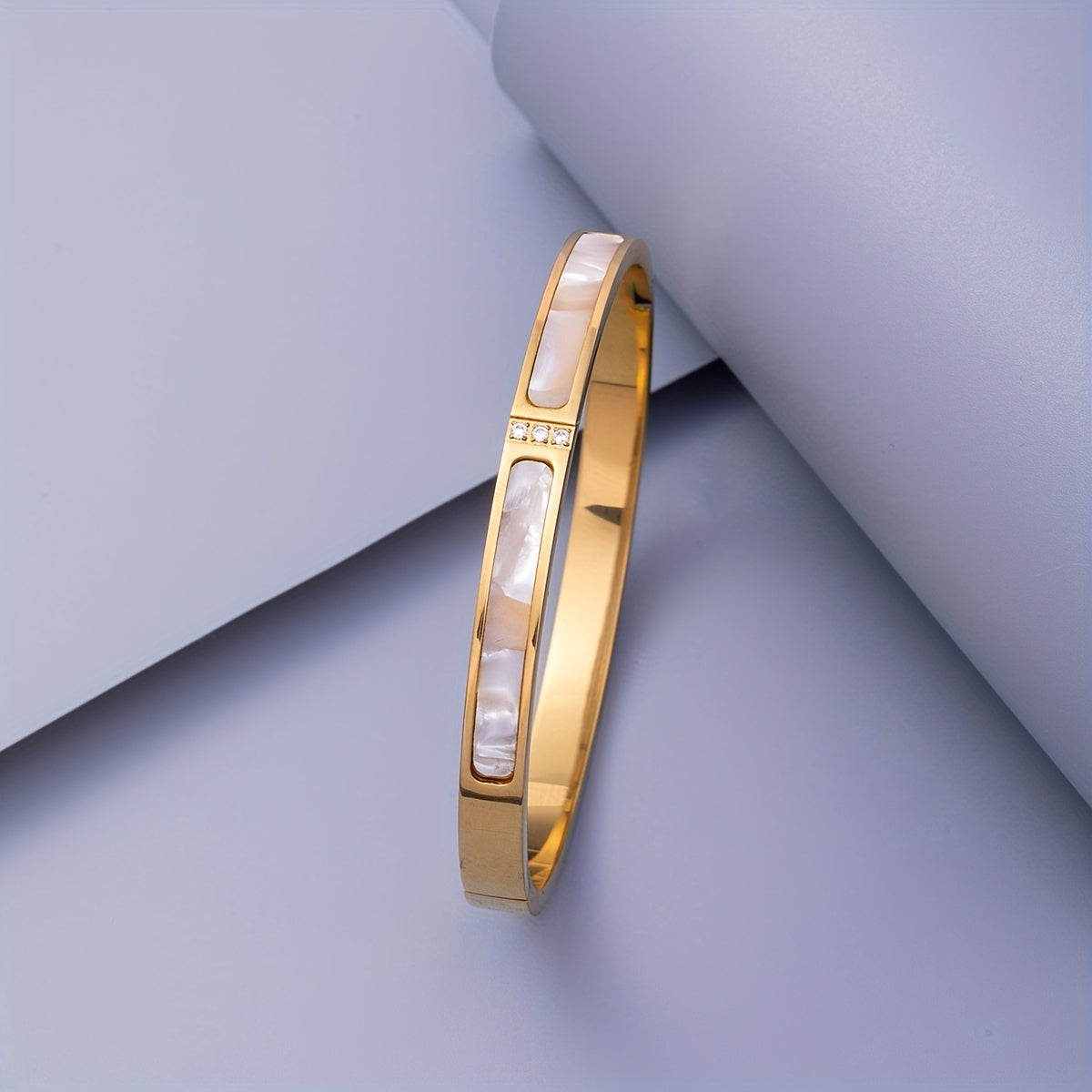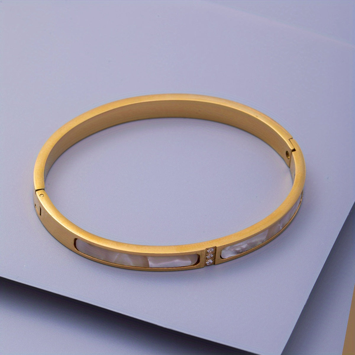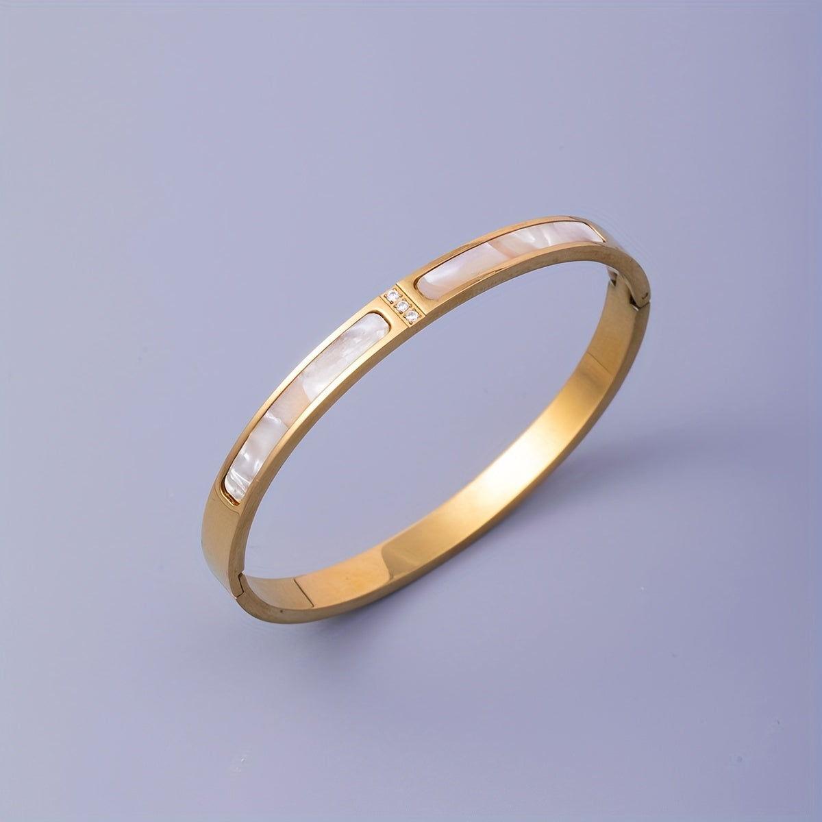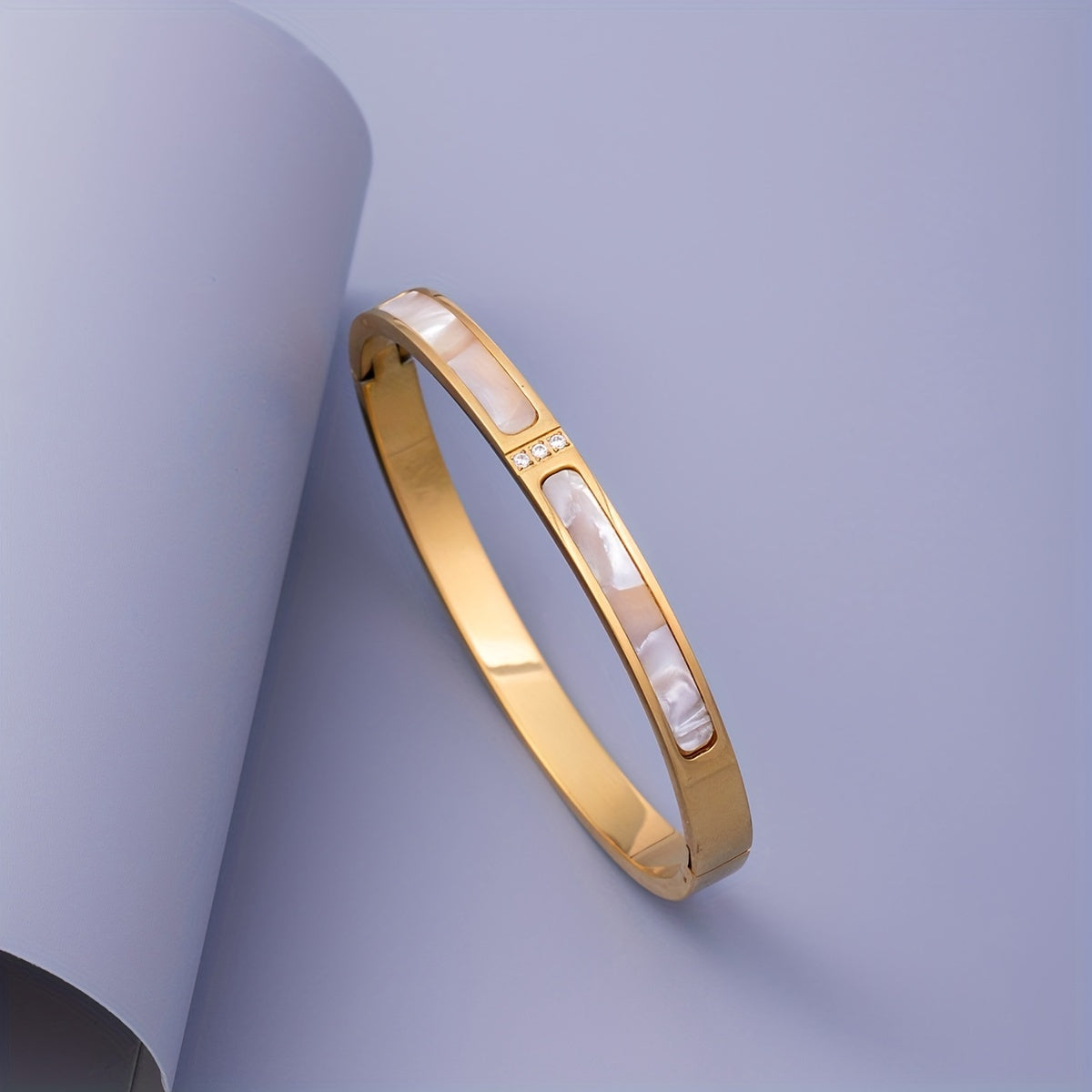 Golden Stainless Steel Rhinestone Seashell Bracelet