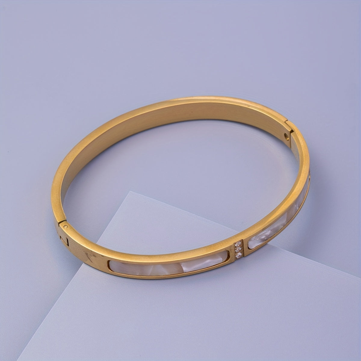 Elegant bracelet made of stainless steel adorned with rhinestones in a seashell design.