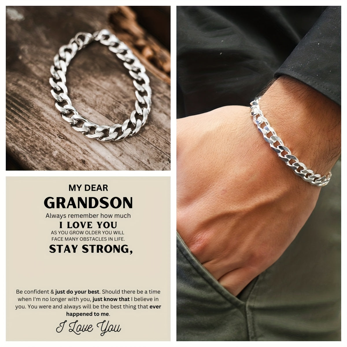 Express your love with this titanium steel chain bracelet featuring a Cuban link design. Perfect for boys, this accessory won't fade and is a great gift from grandparents.