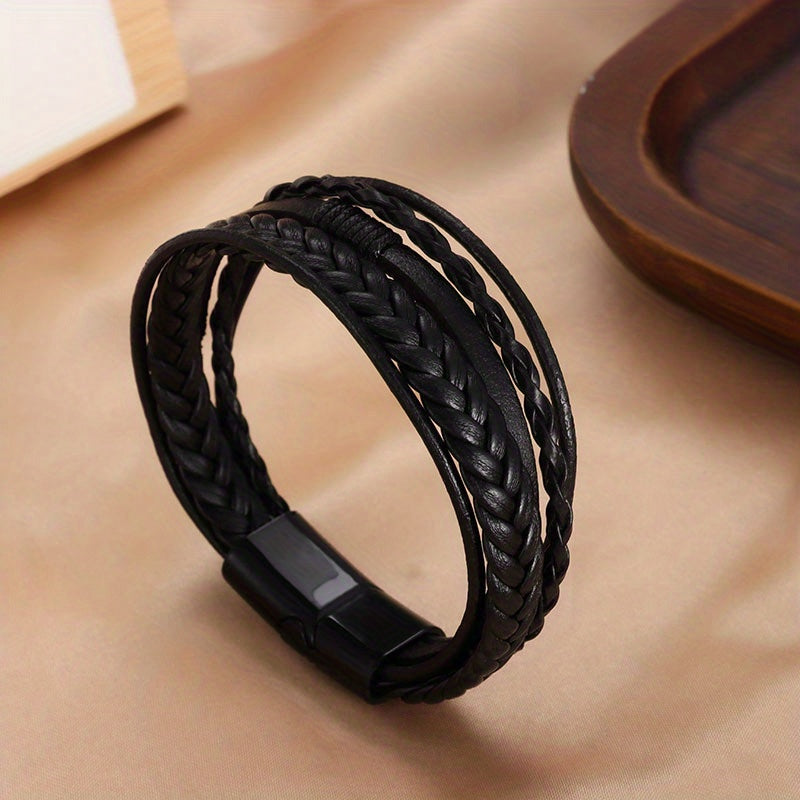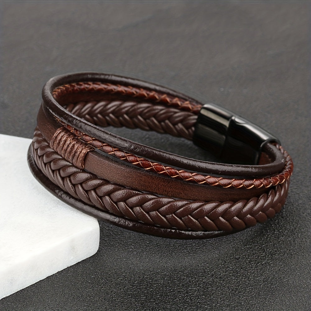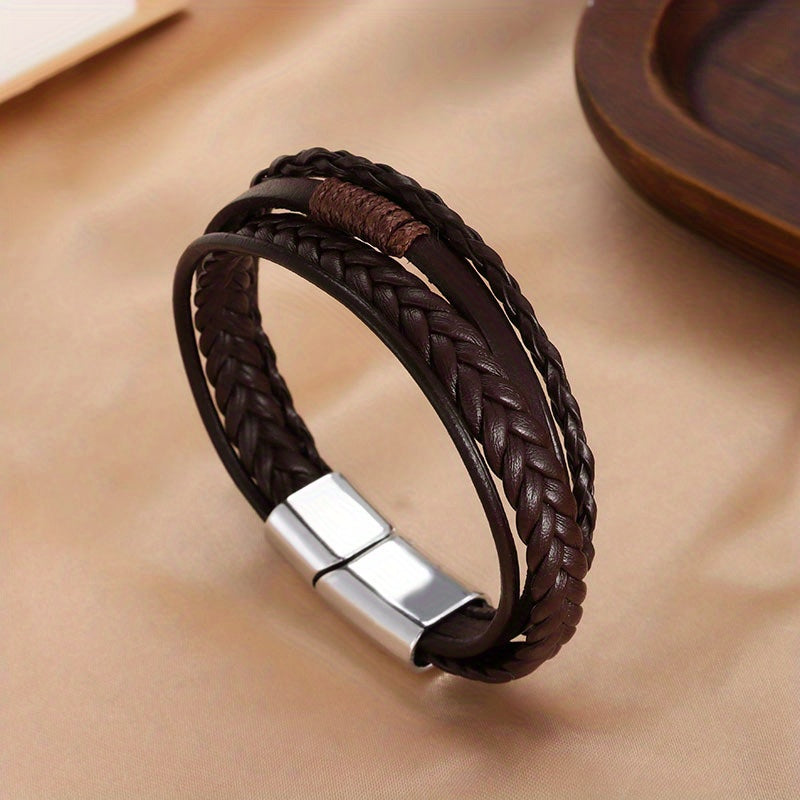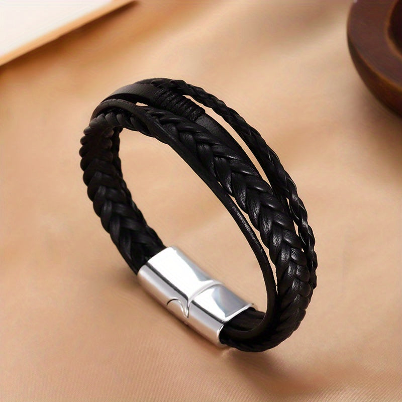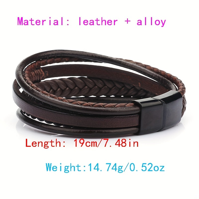 This bracelet features a unique hand woven layer design, crafted from premium leather. It exudes ethnic charm and creativity, perfect for men who appreciate artistic jewelry.