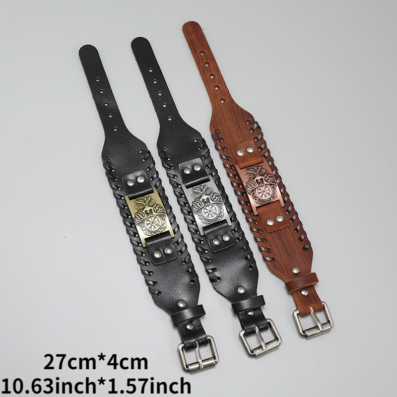 Handwoven Cowhide Bracelet for Men, Viking Leather Cuff