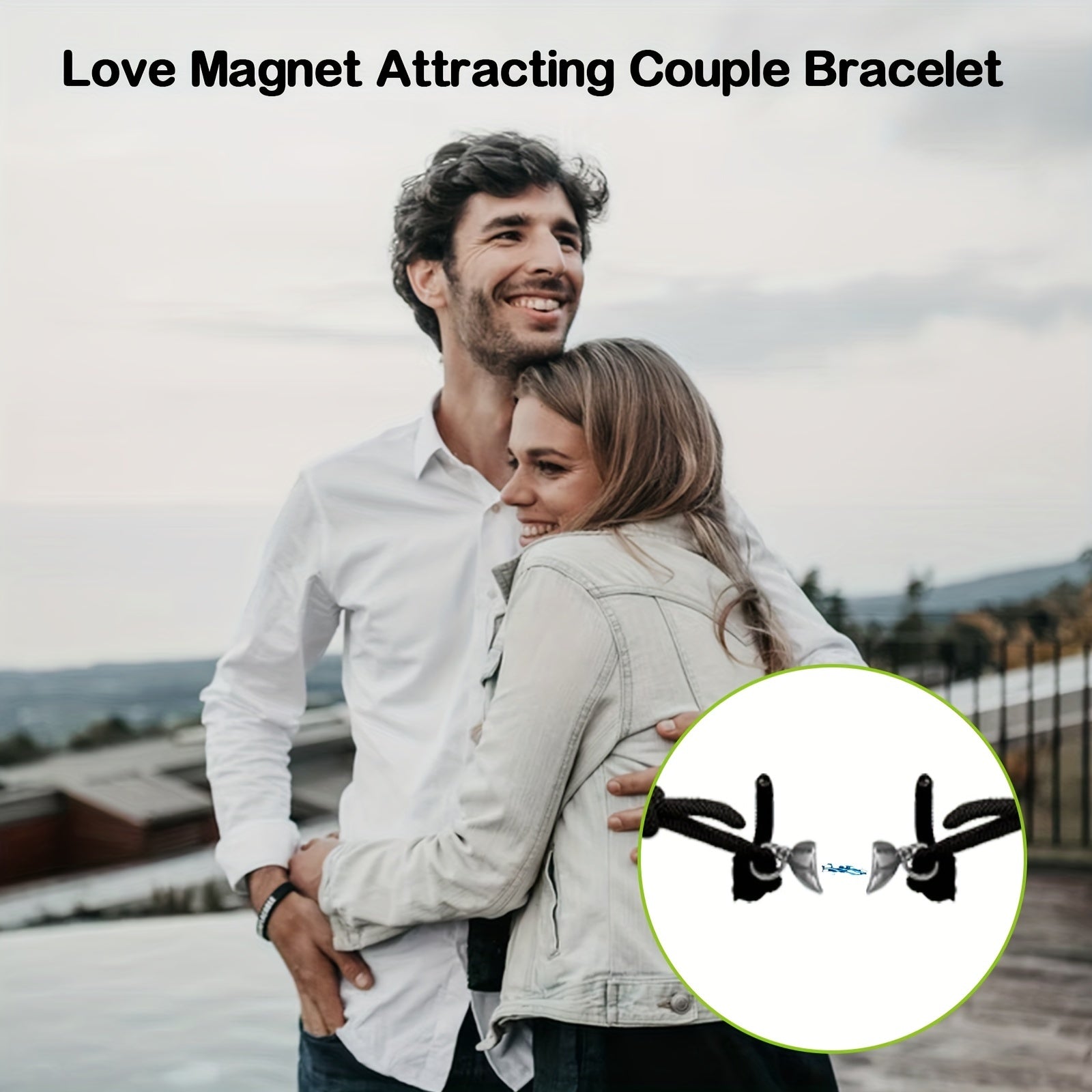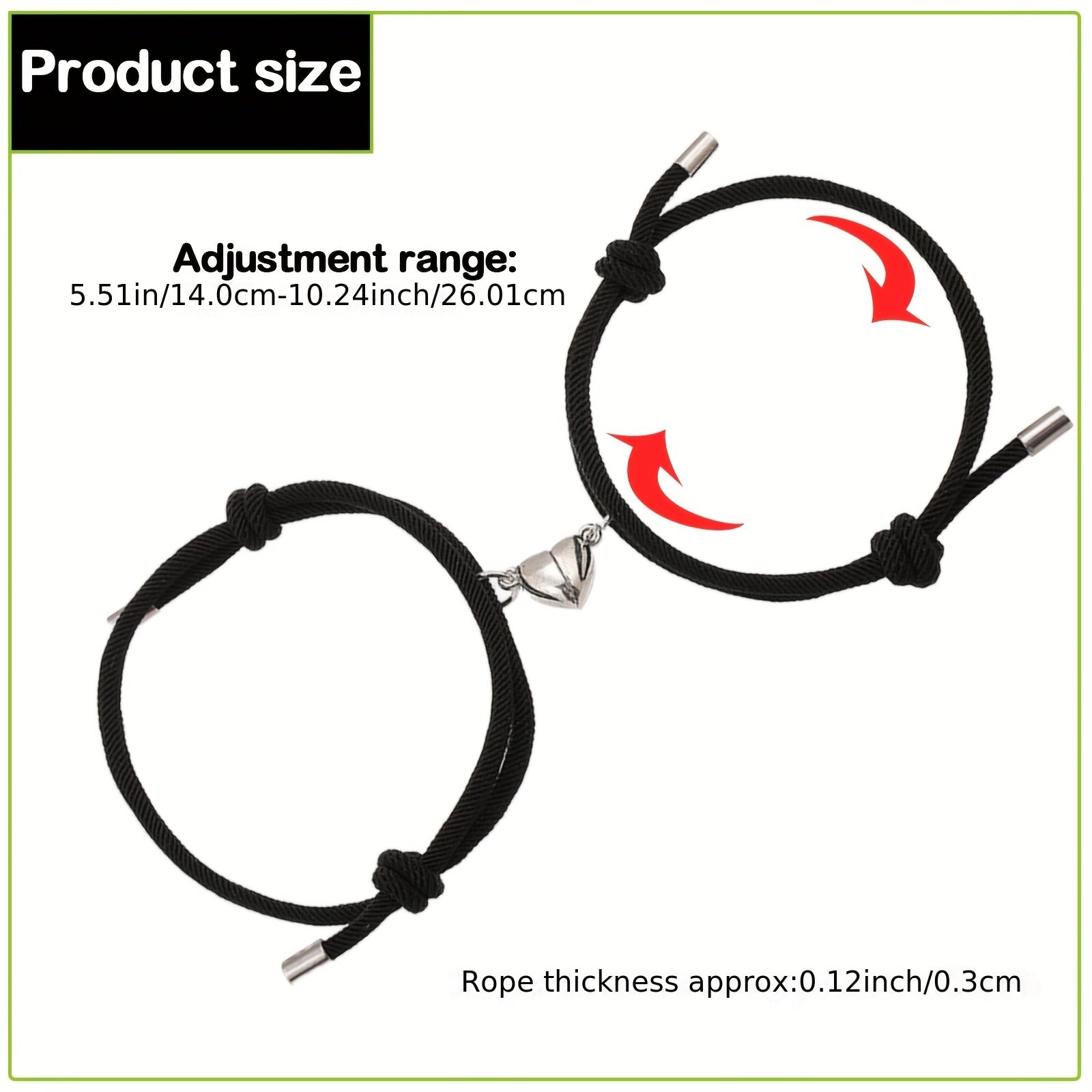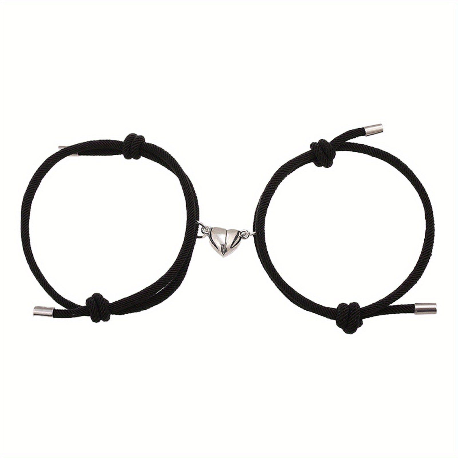 Get this set of 2 adjustable magnetic bracelets for couples. The braided rope design features heart-shaped charms, perfect for expressing love and connection.