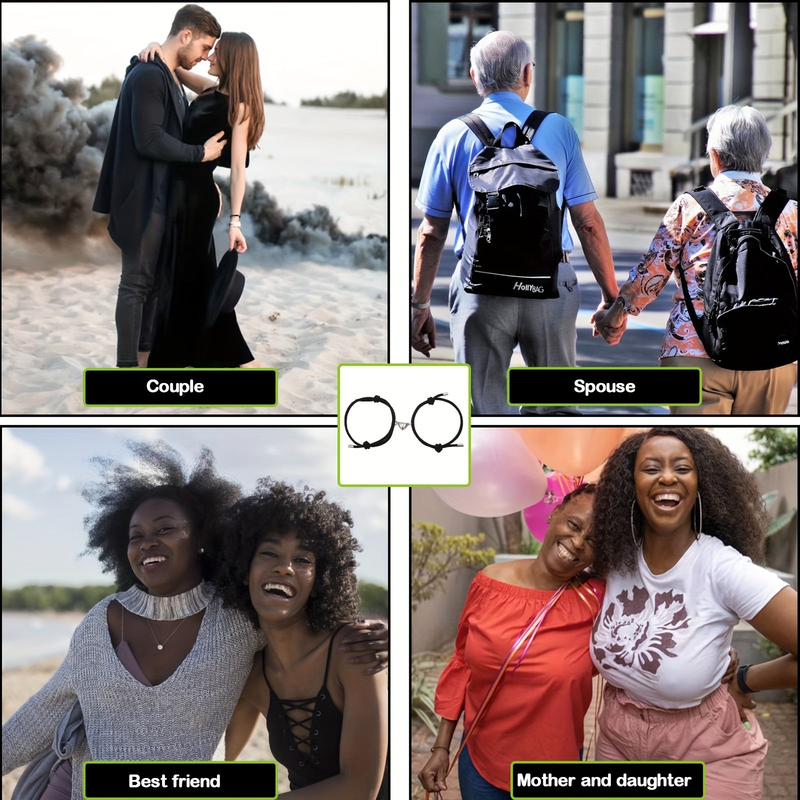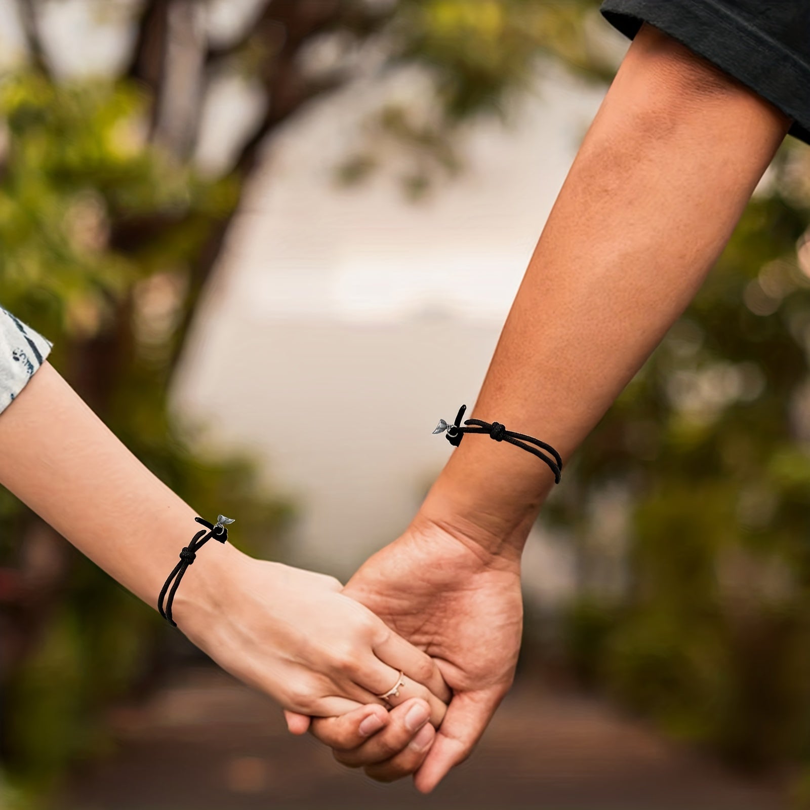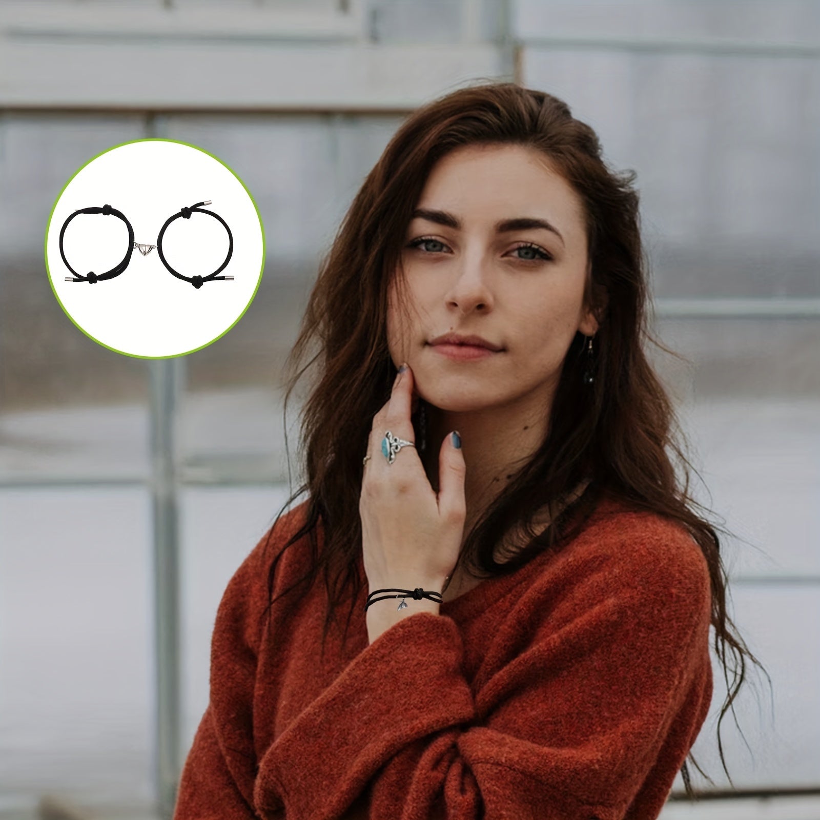 Get this set of 2 adjustable magnetic bracelets for couples. The braided rope design features heart-shaped charms, perfect for expressing love and connection.