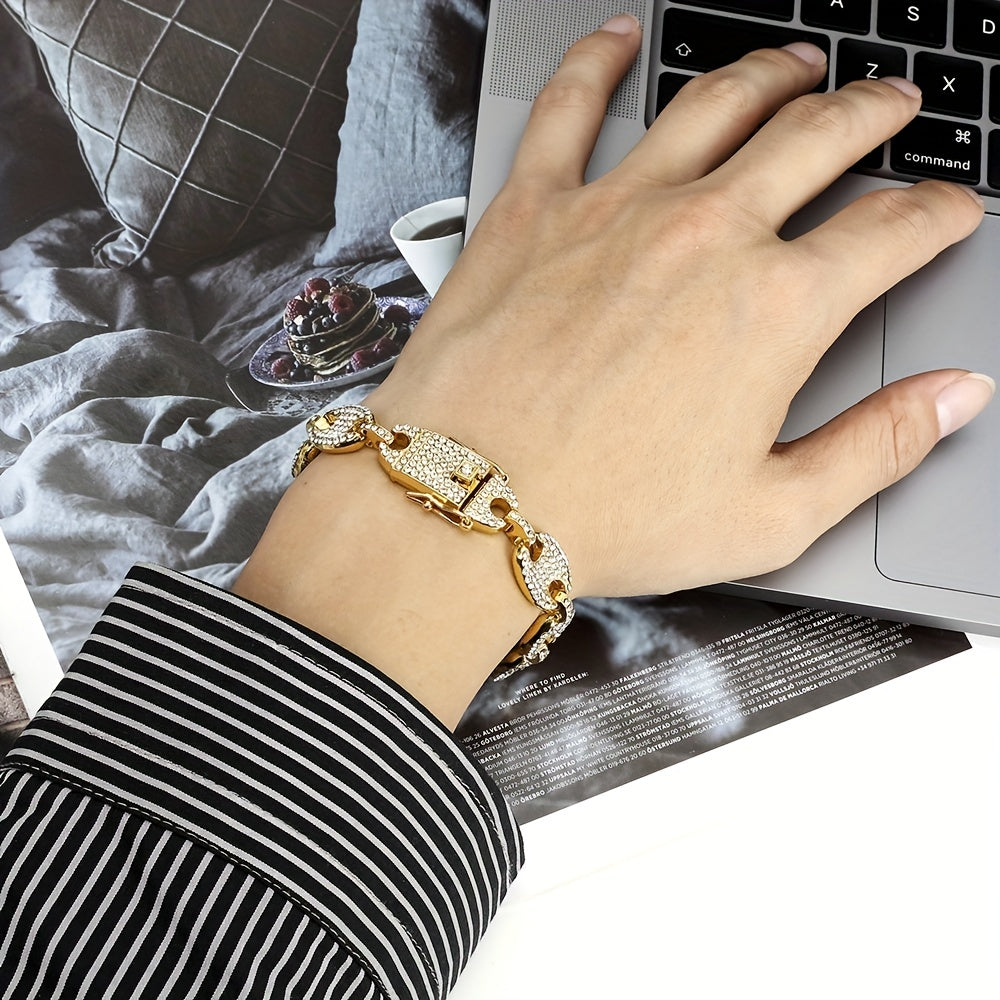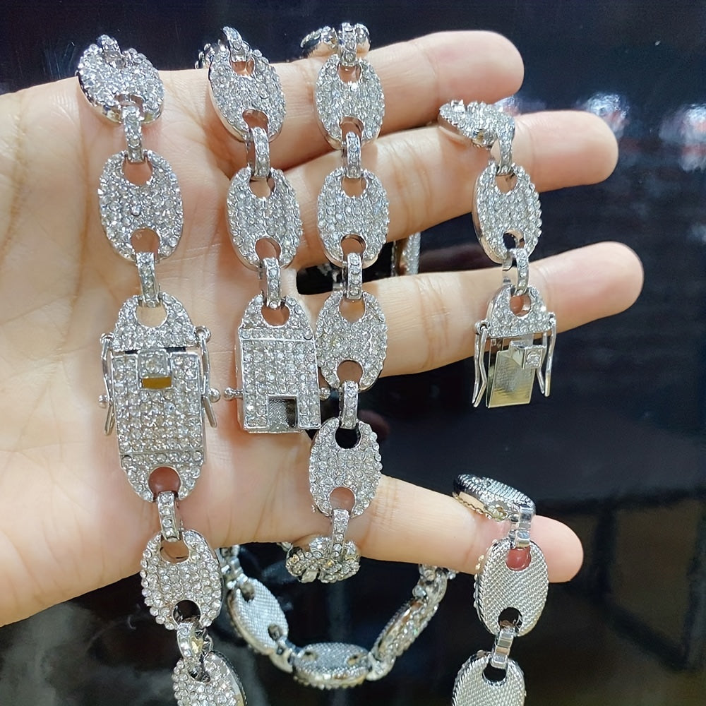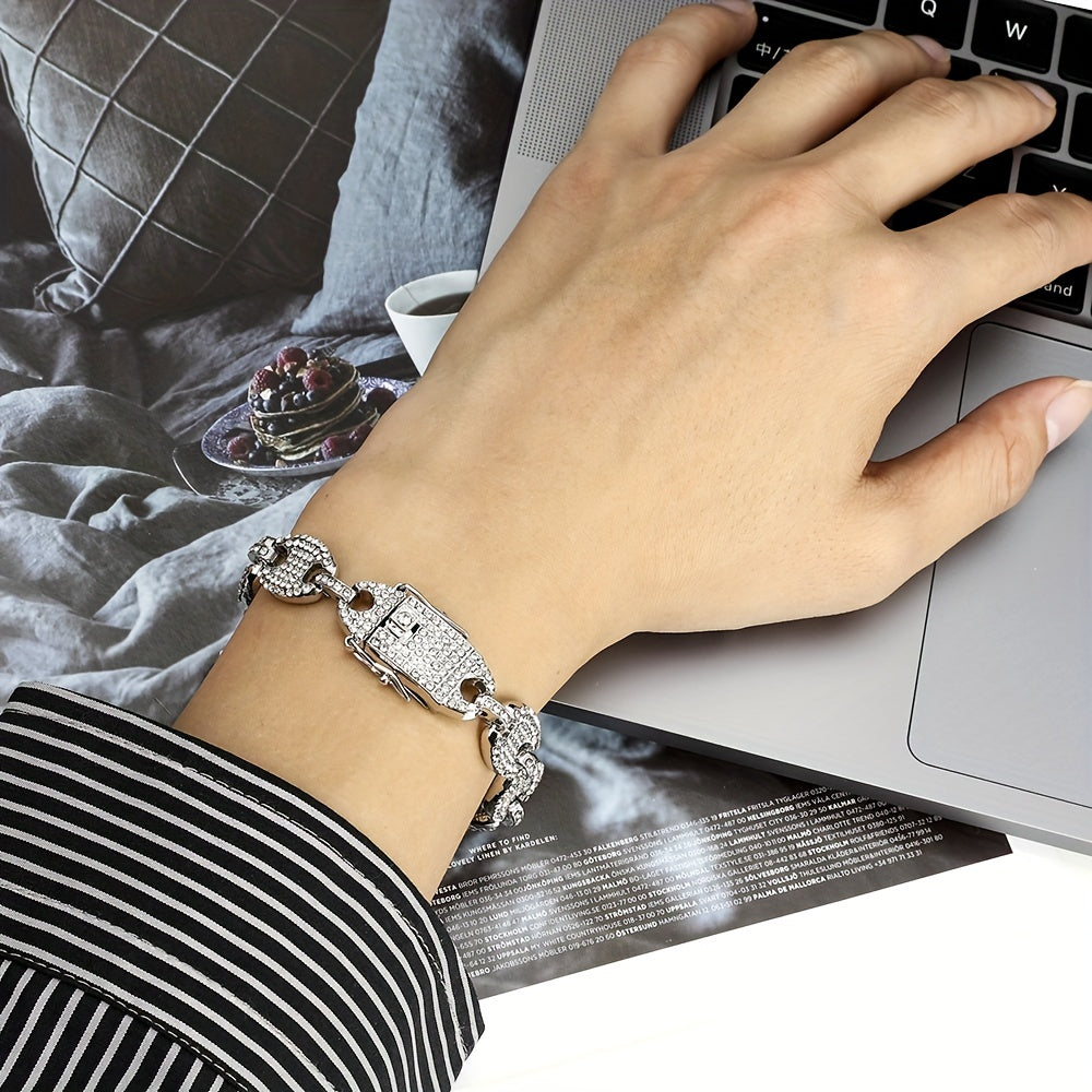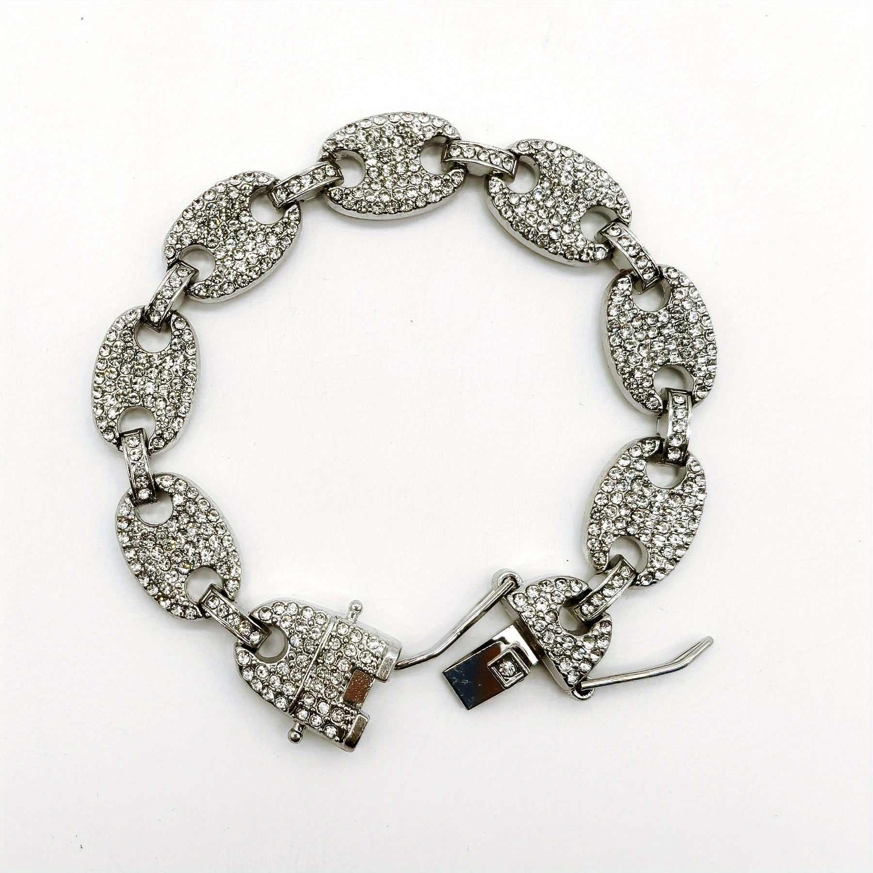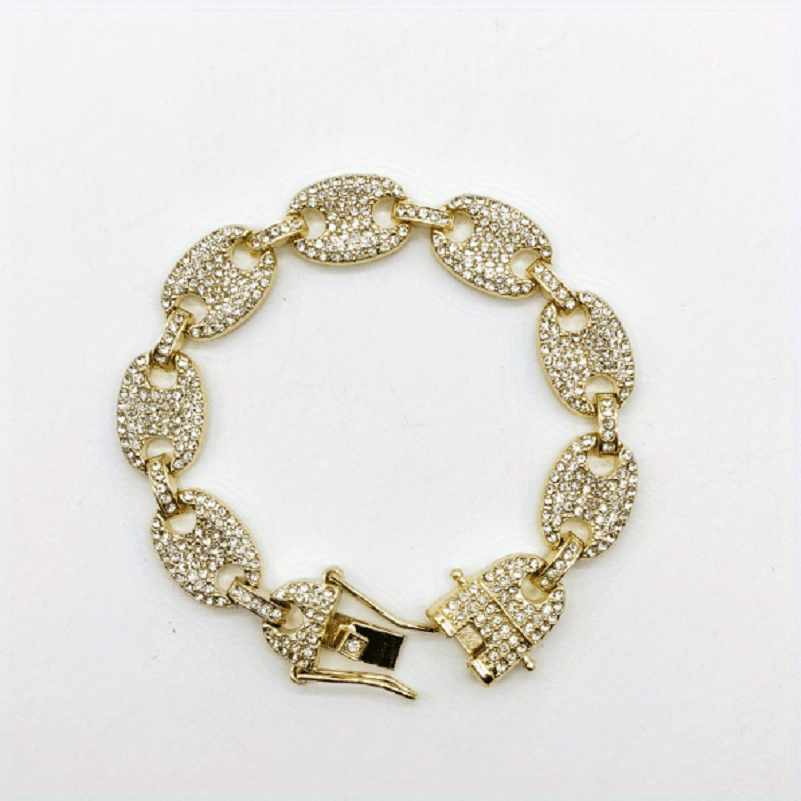 This stylish bracelet features a pig nose shape design adorned with faux diamonds. It's a perfect accessory for hip hop enthusiasts.