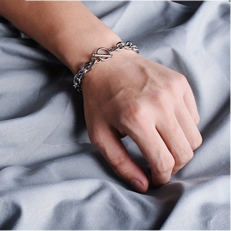 This stylish bracelet features a thick chain and hollow European design, perfect for a hip hop or punk style.